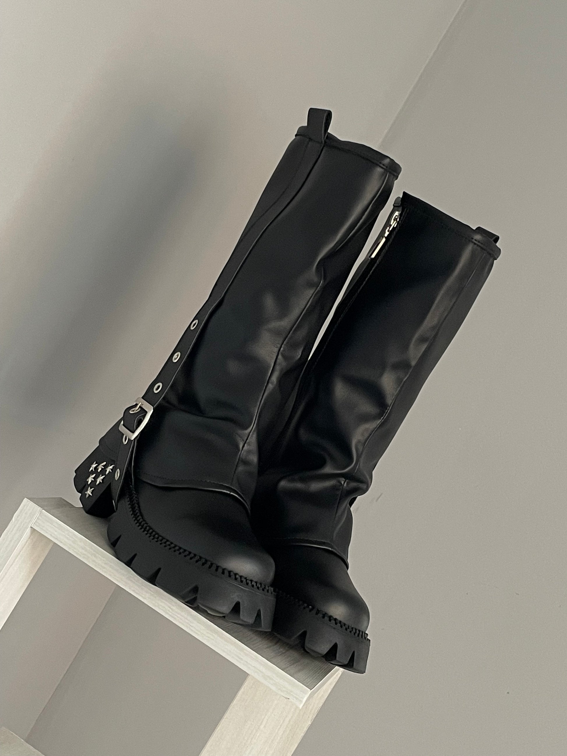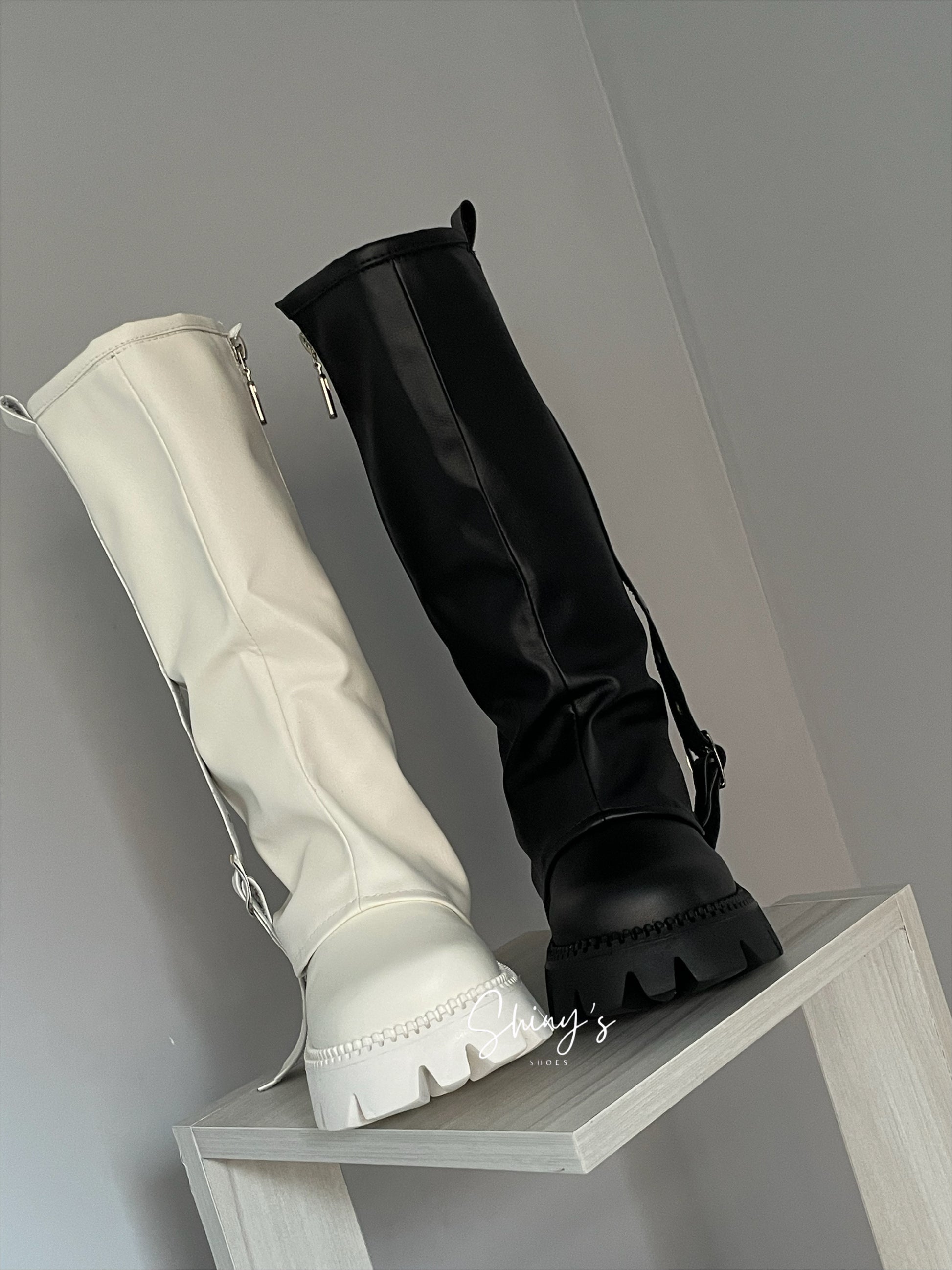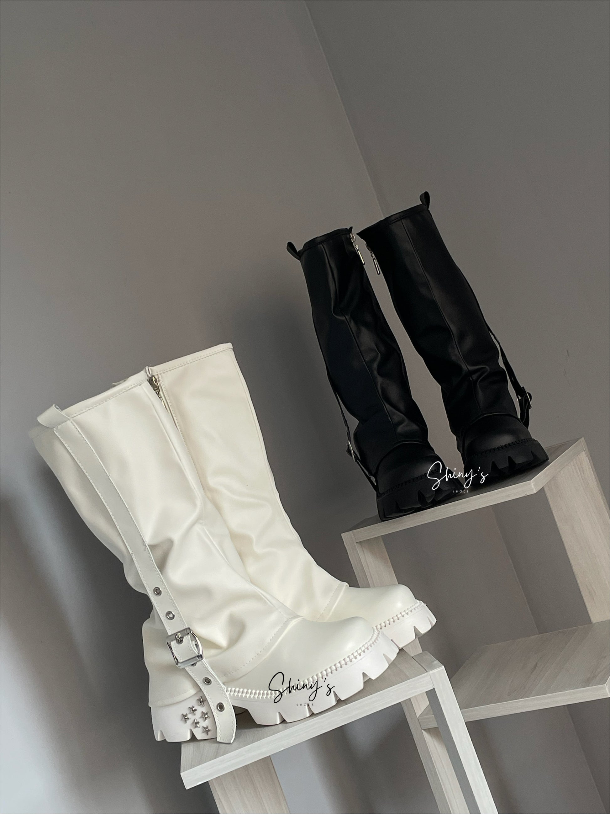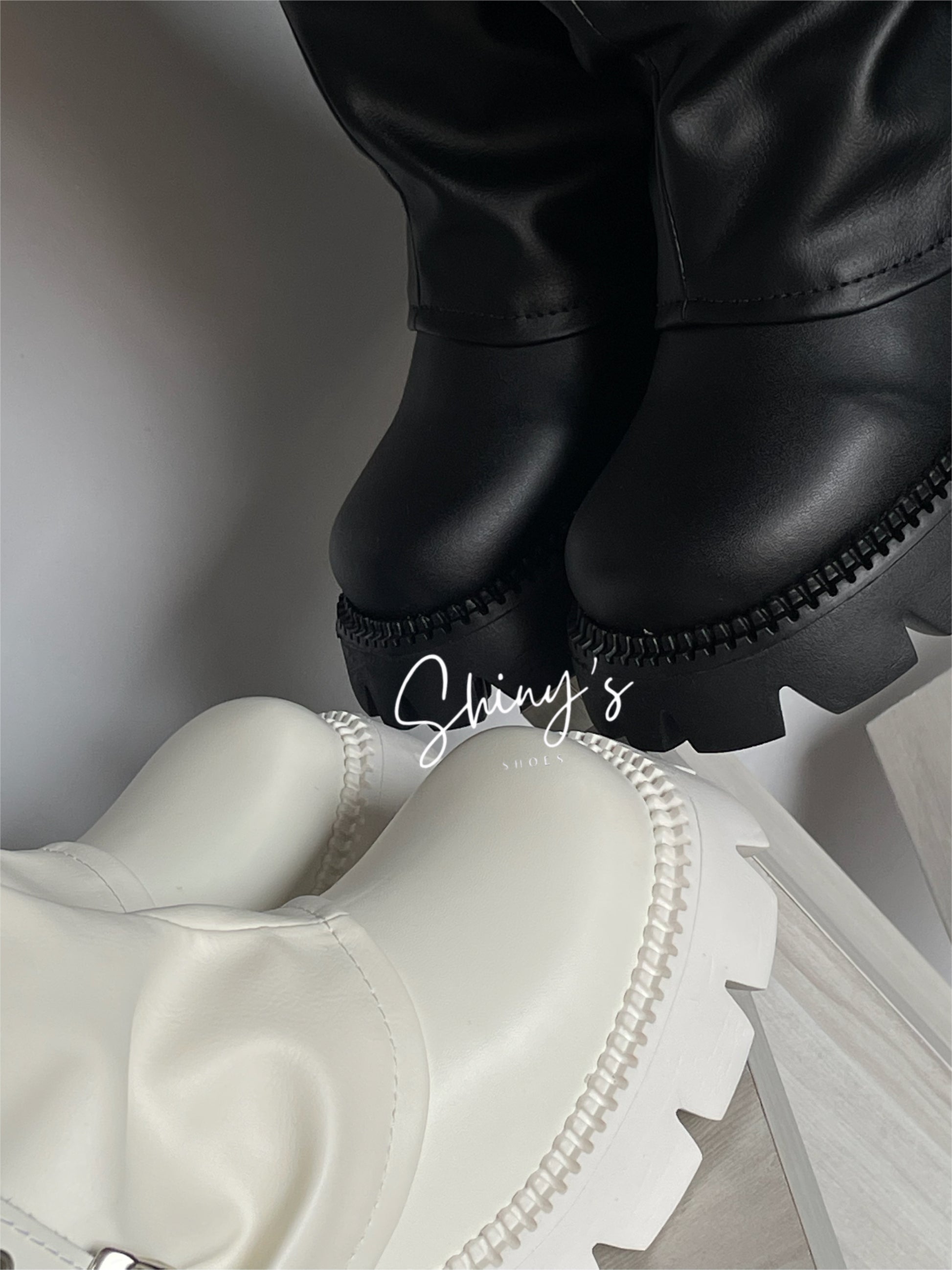 Su diseño de horma cuadrada tipo falca brinda un look moderno y cómodo, complementado con una correa decorativa que realza su estilo. Además, incluyen cremallera funcional lateral para un ajuste práctico y seguro.
