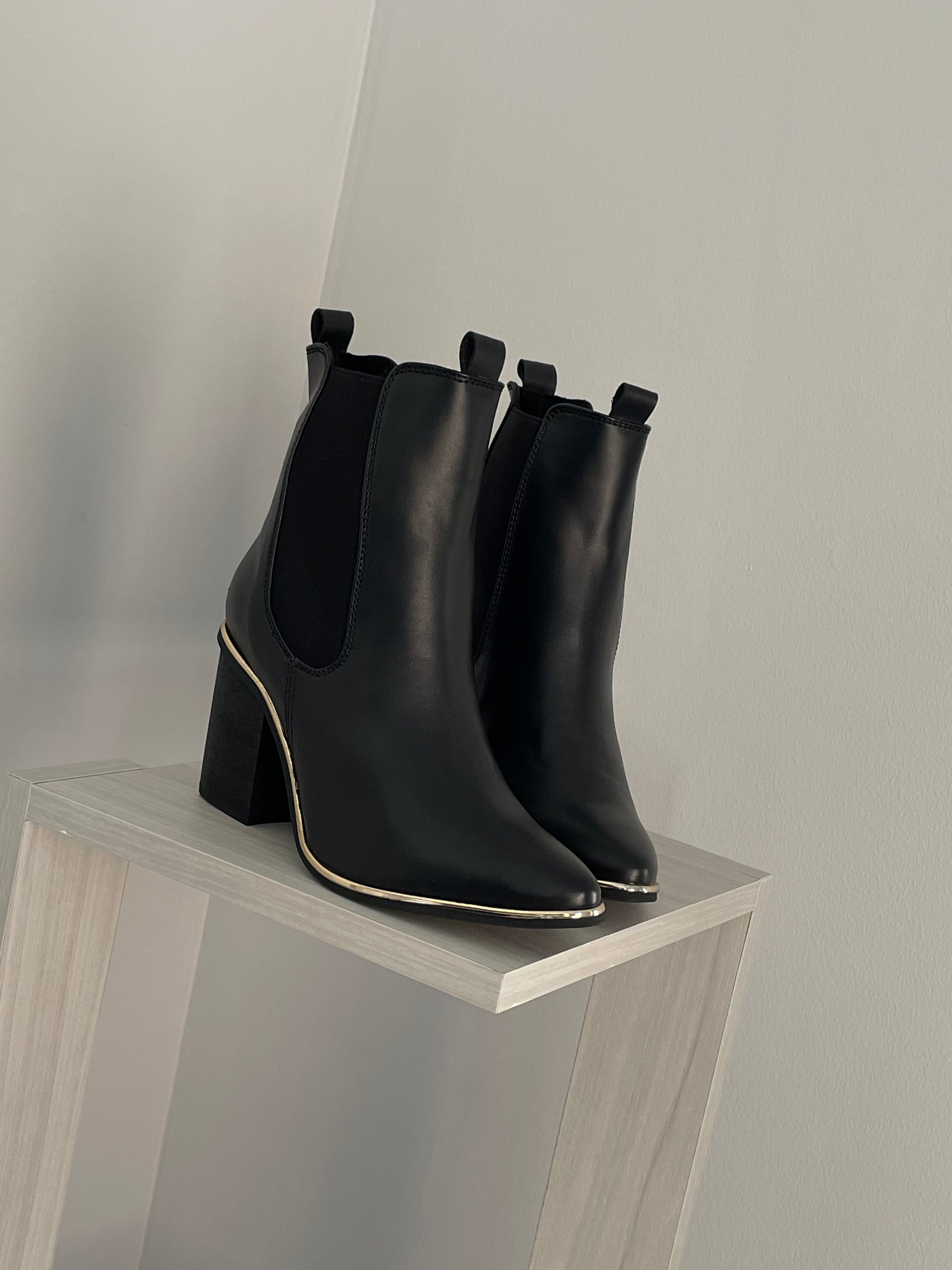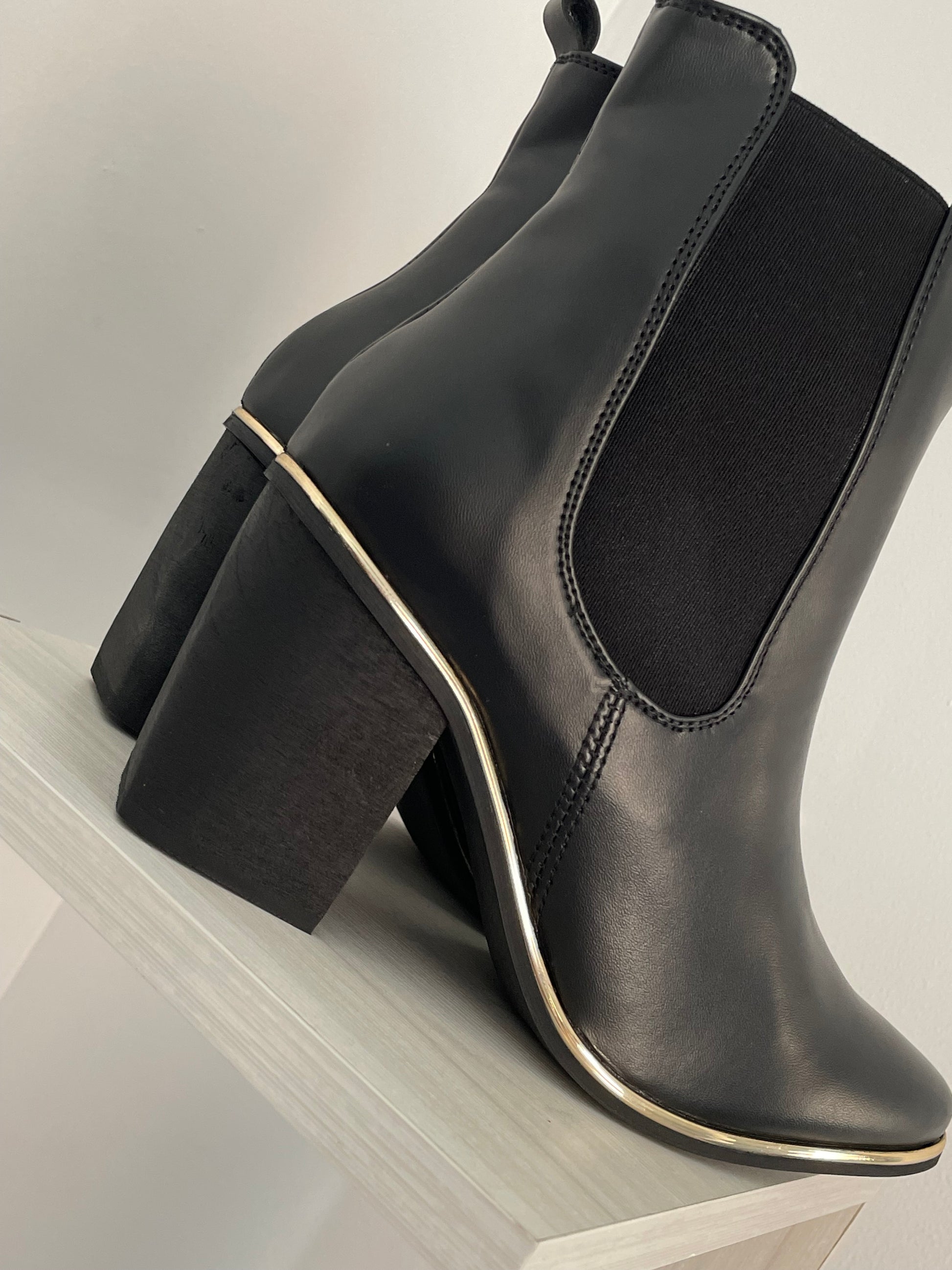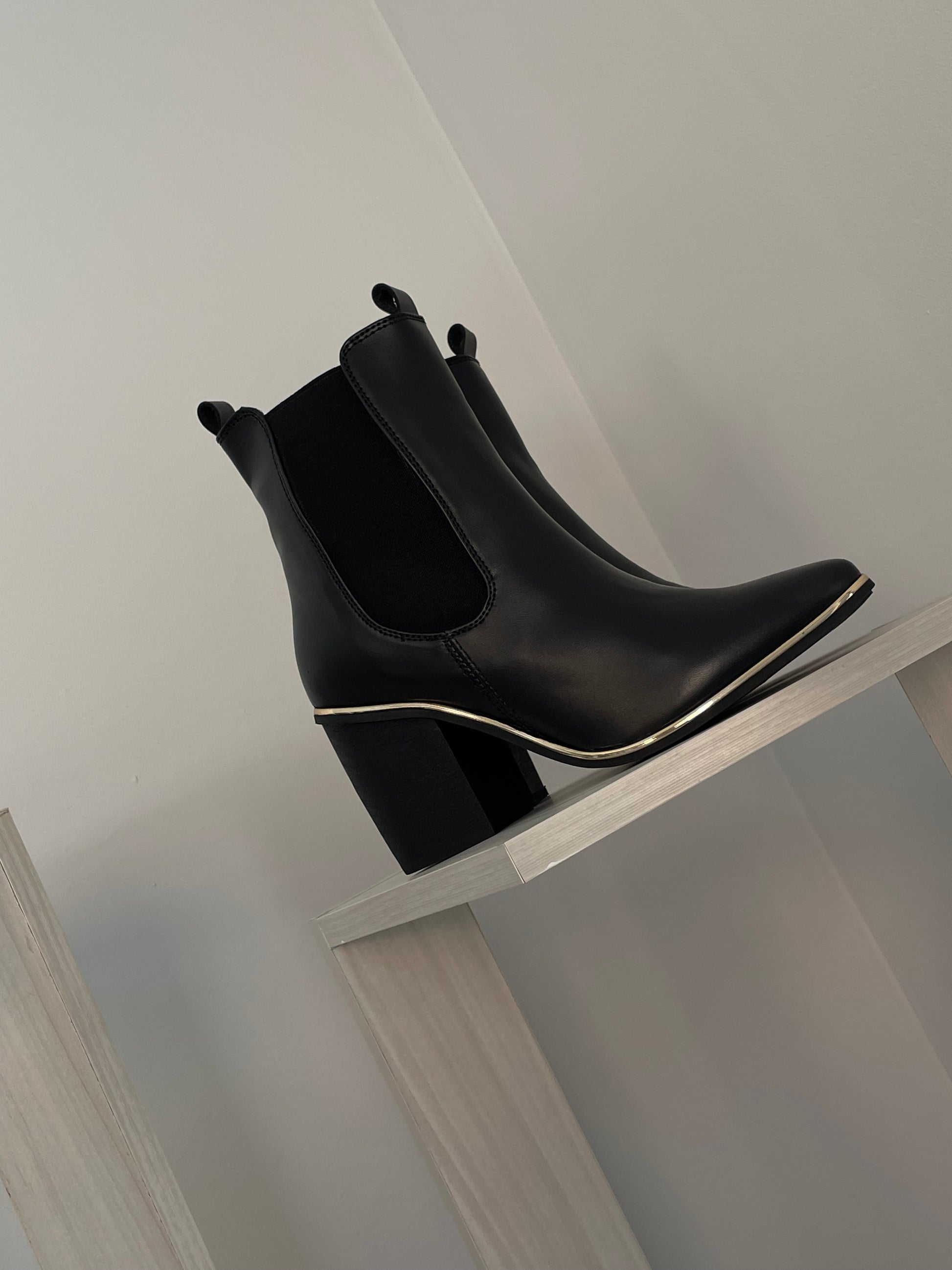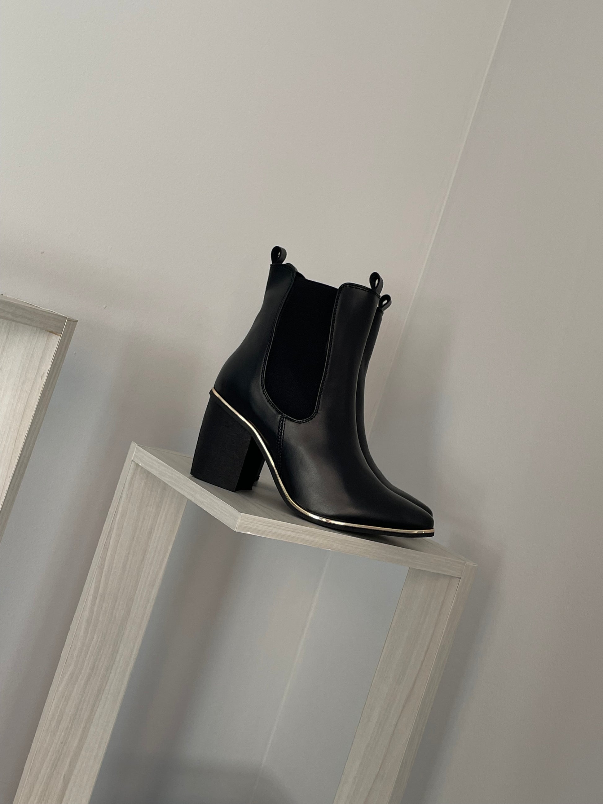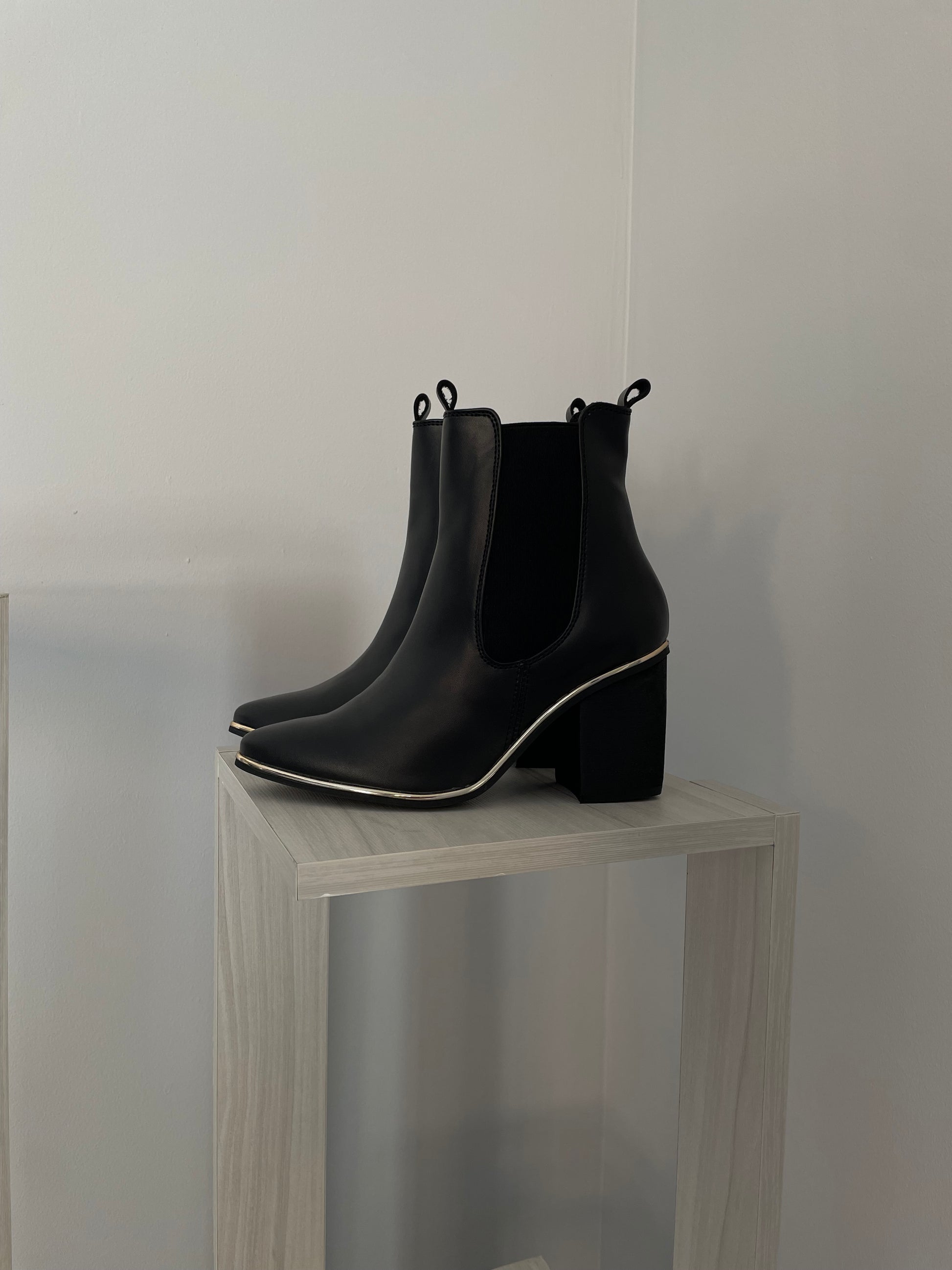 Elegancia con un toque moderno. Este botín, elaborado en material sintético de alta calidad, cuenta con laterales en resorte que facilitan el calce y aseguran un ajuste cómodo.