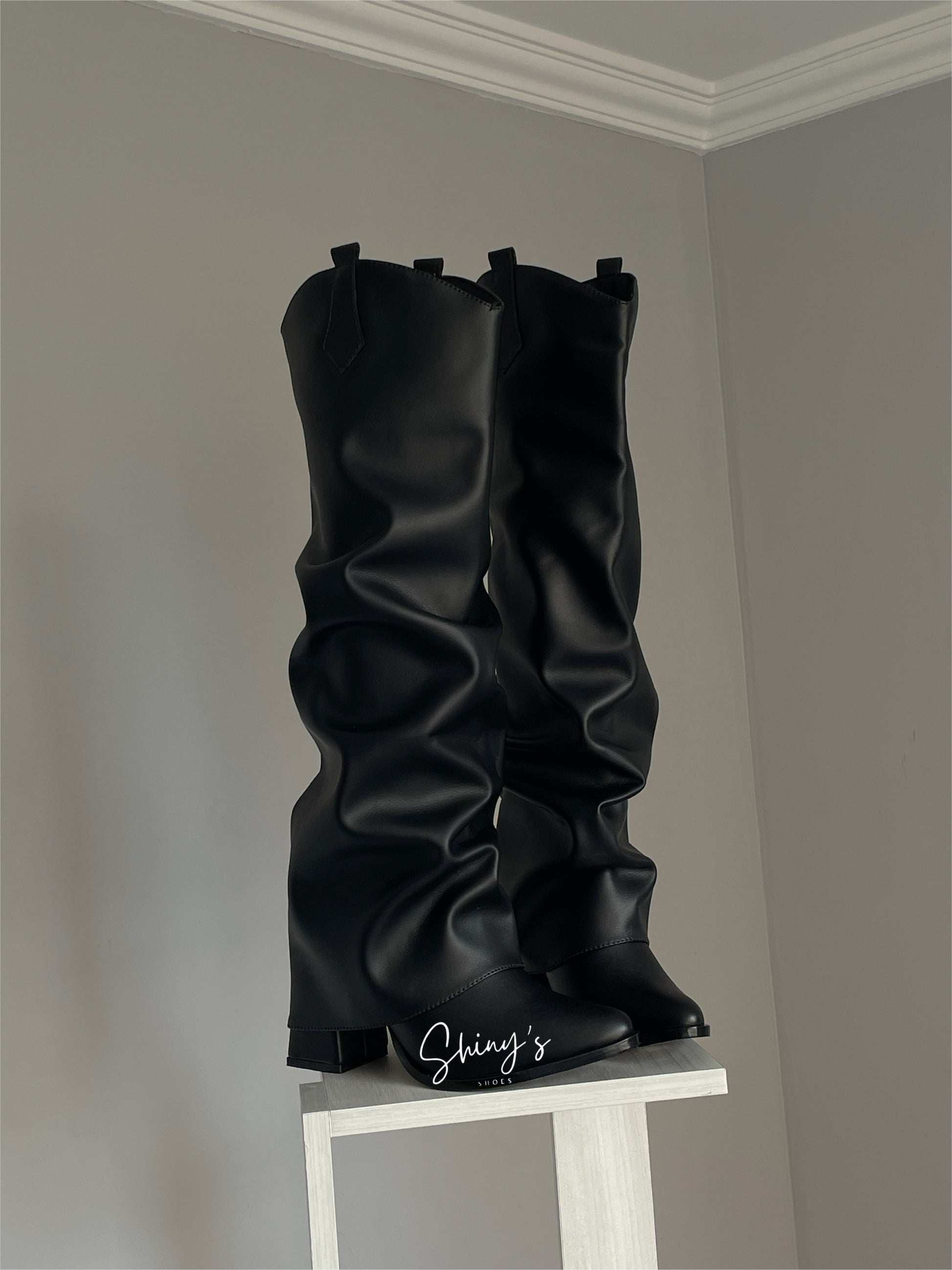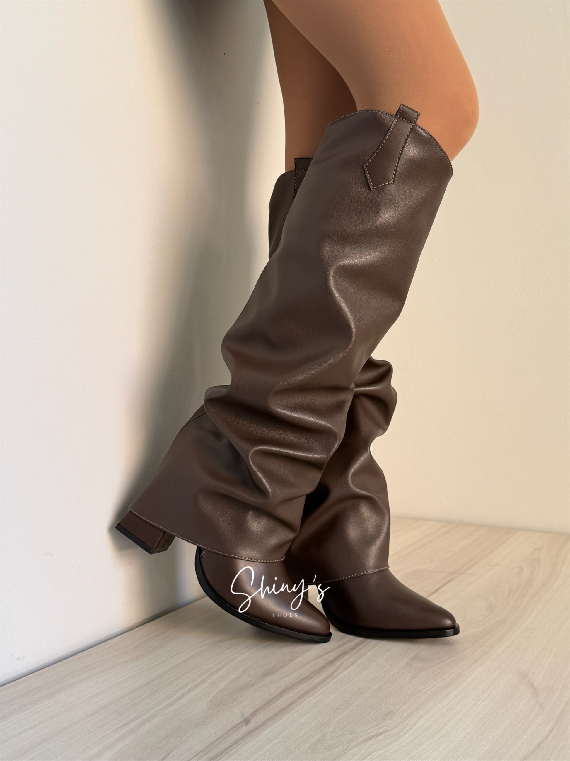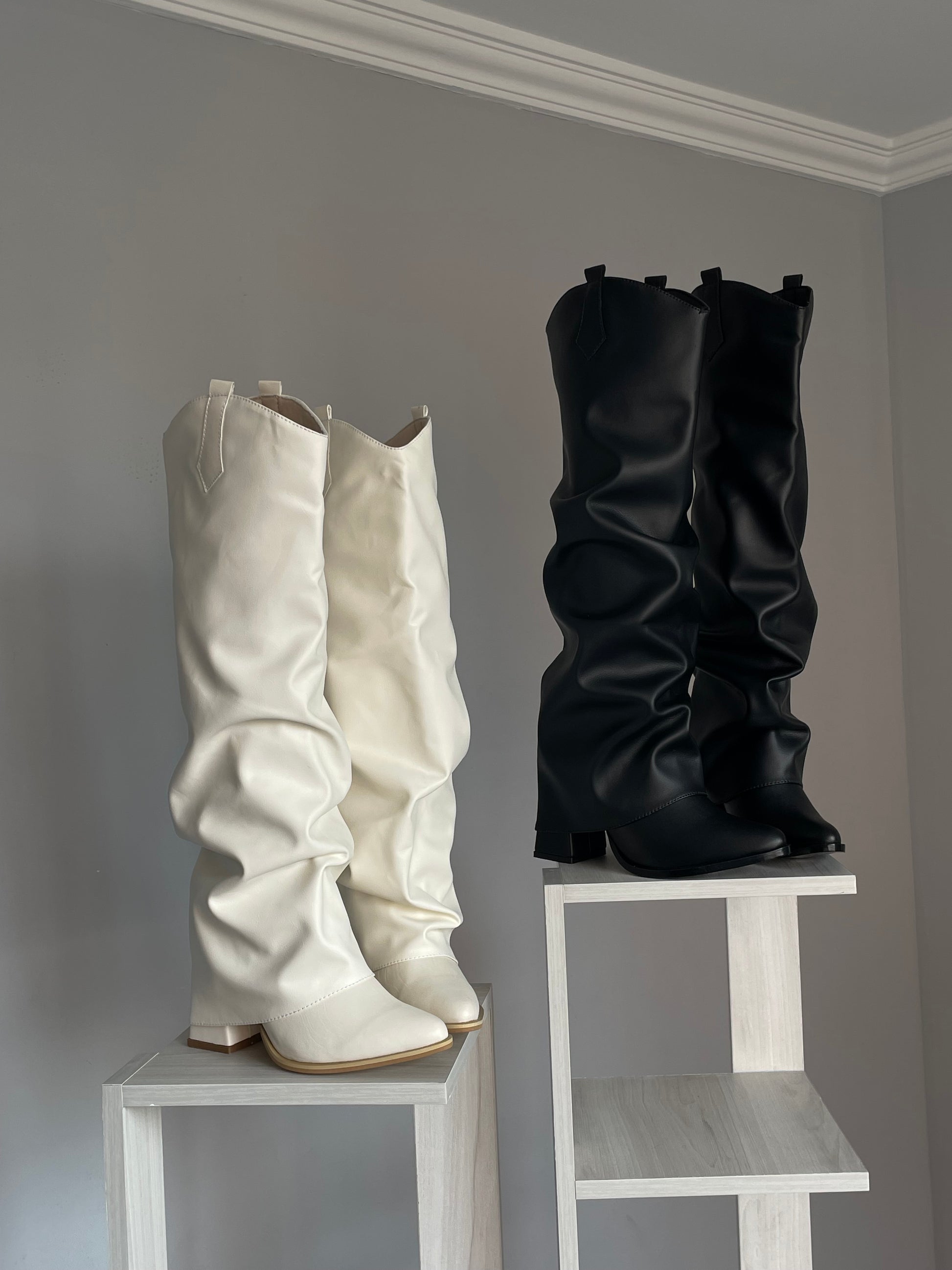 ✨ Botas tipo falda con caña arrugada y corte texano ✨