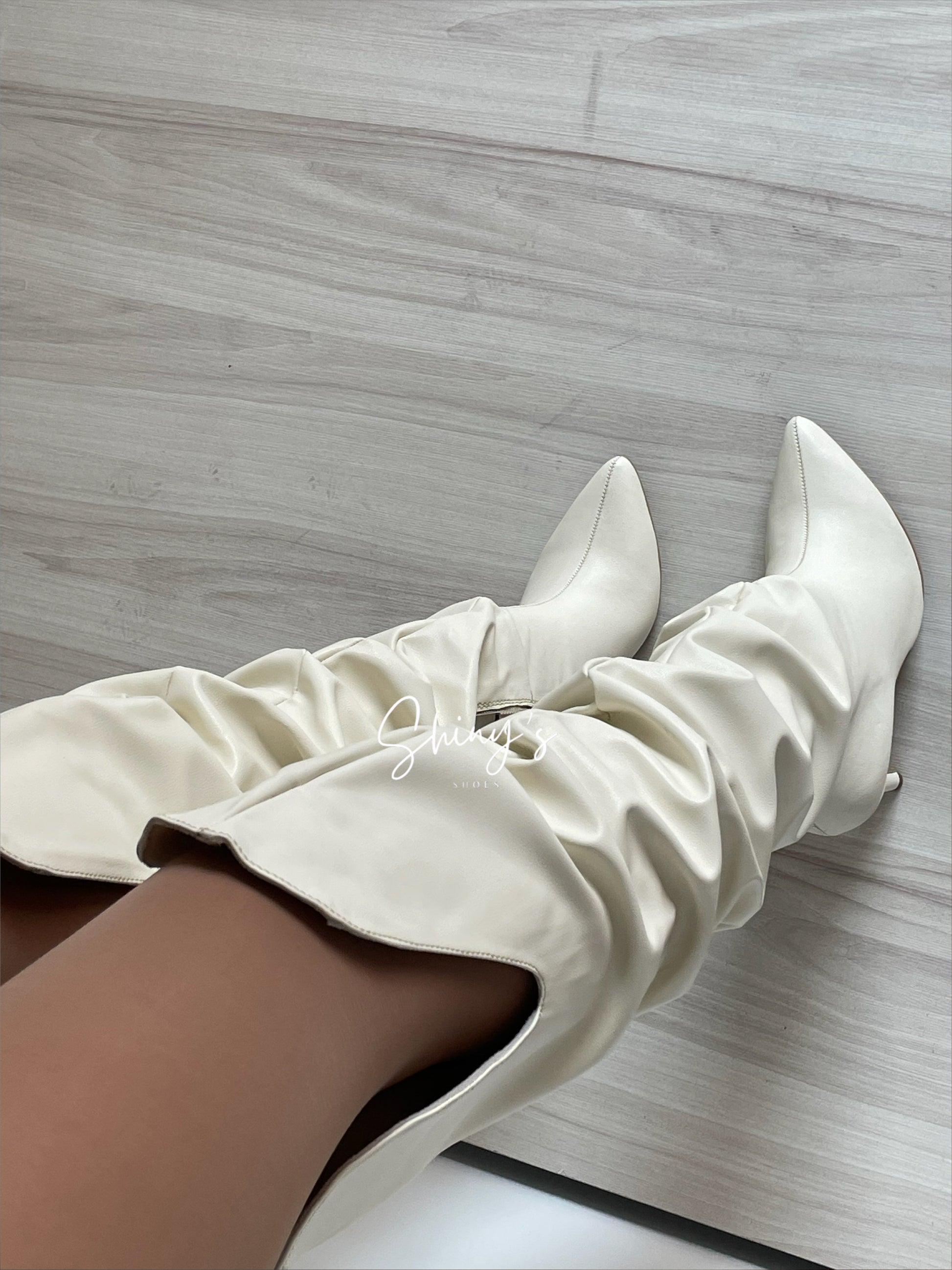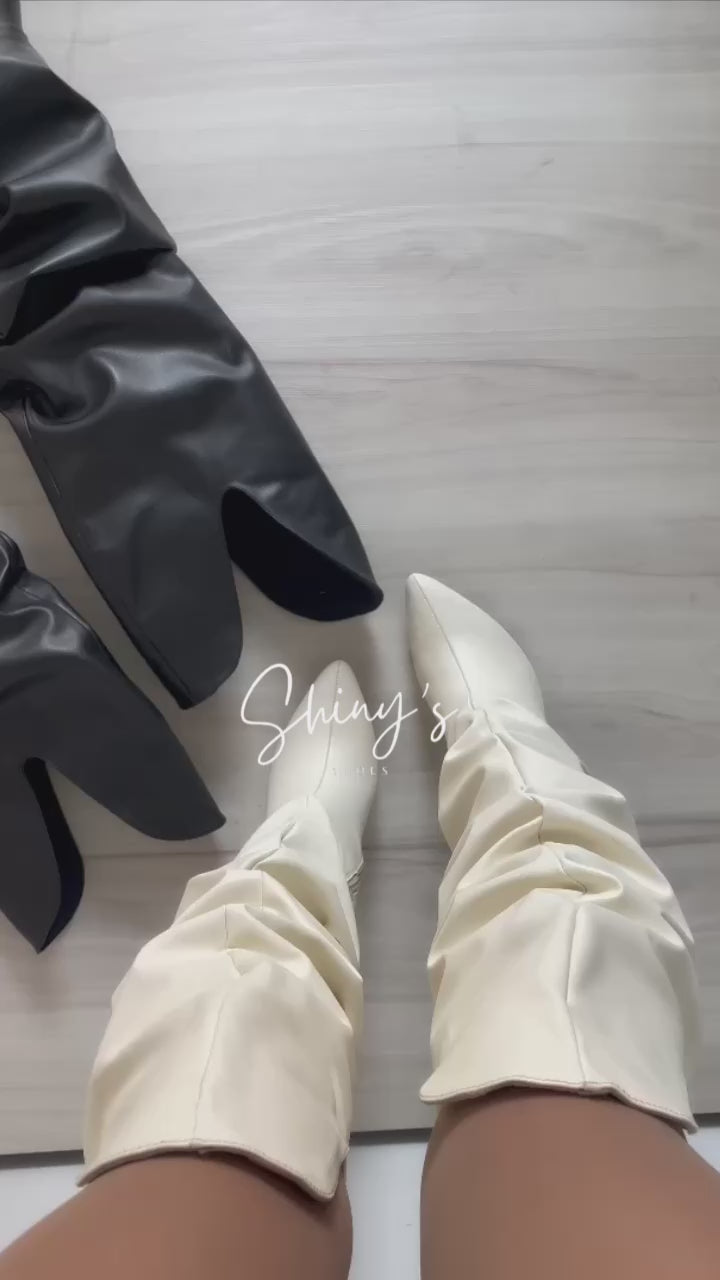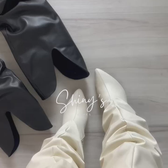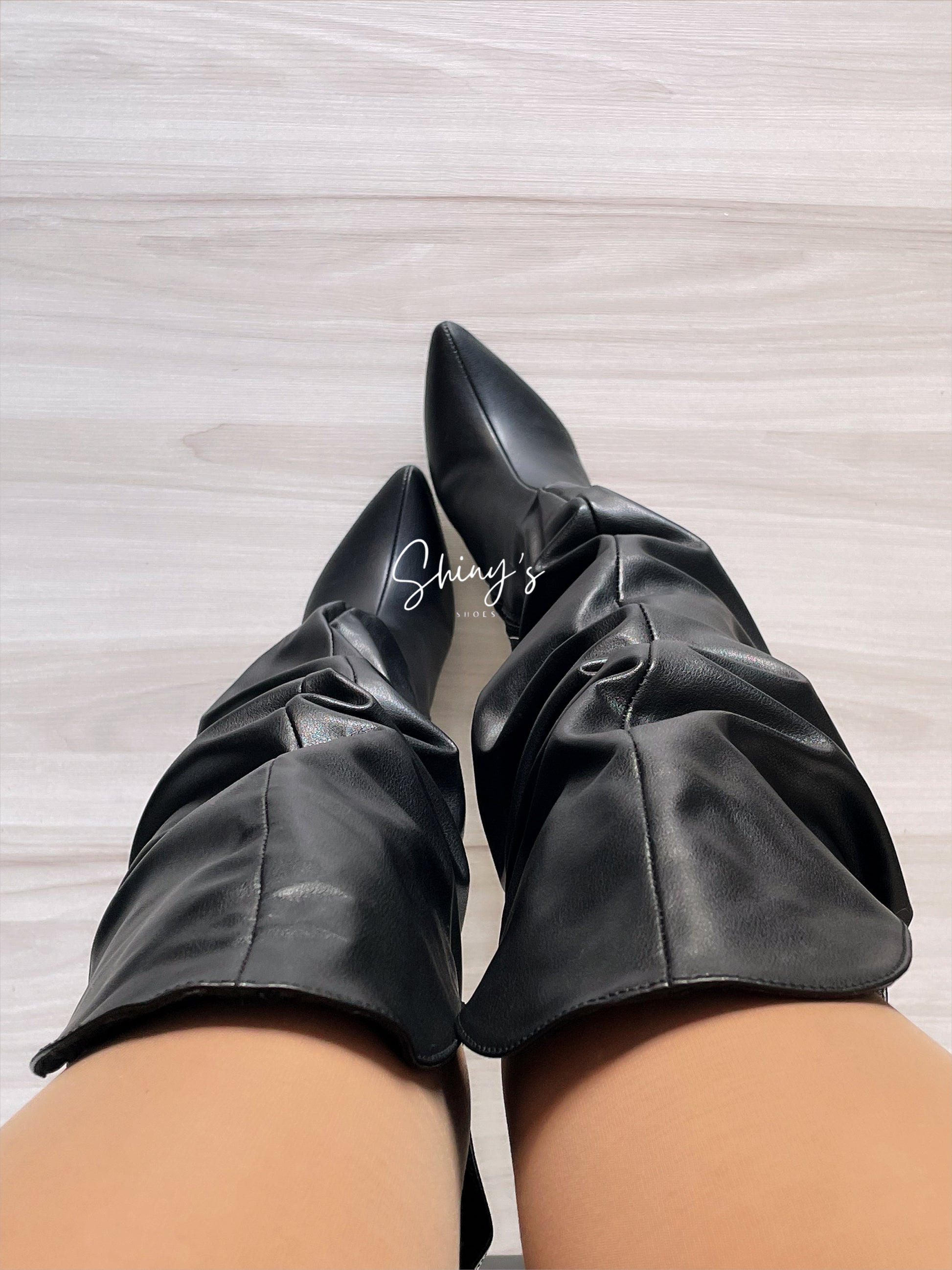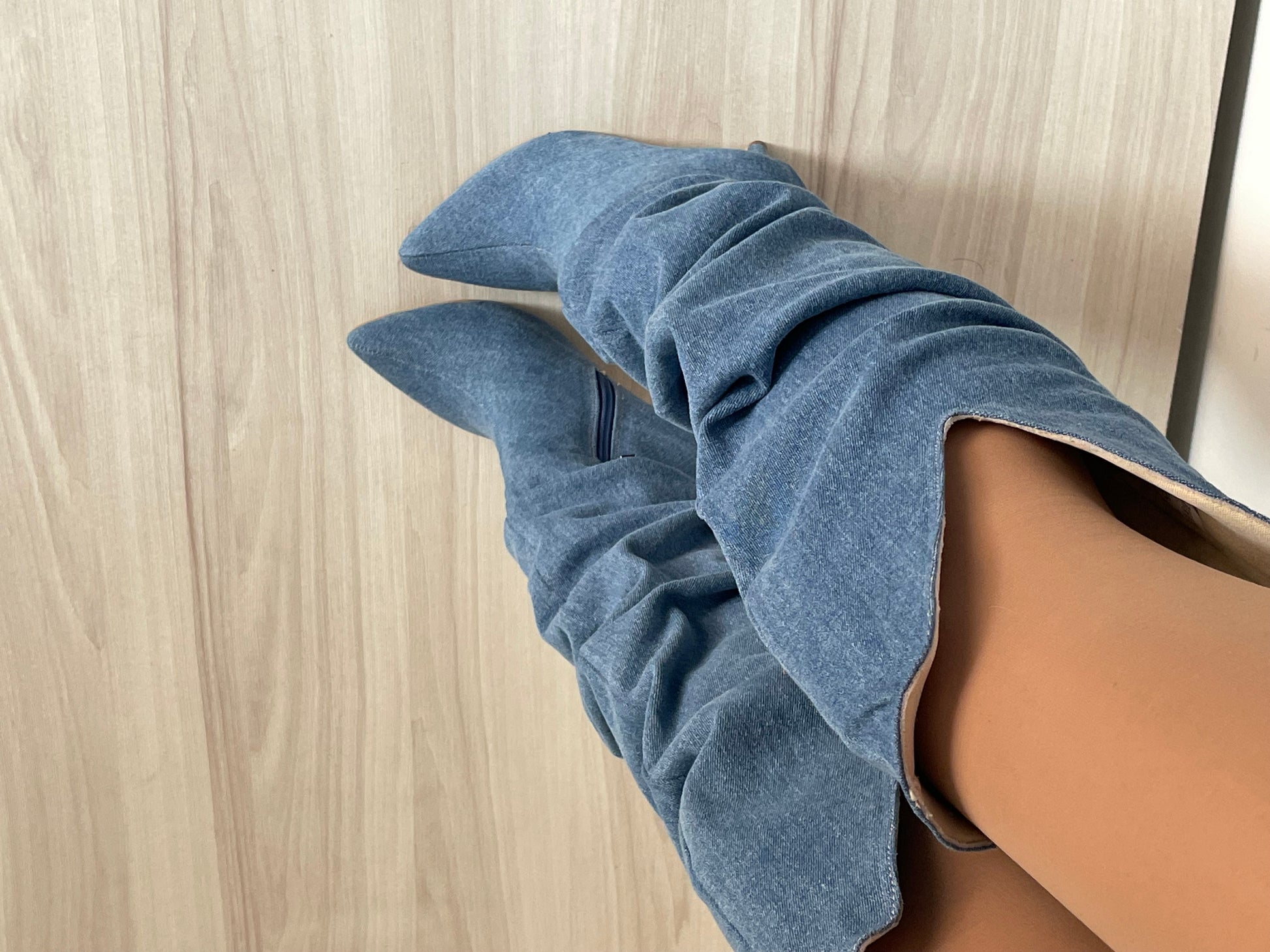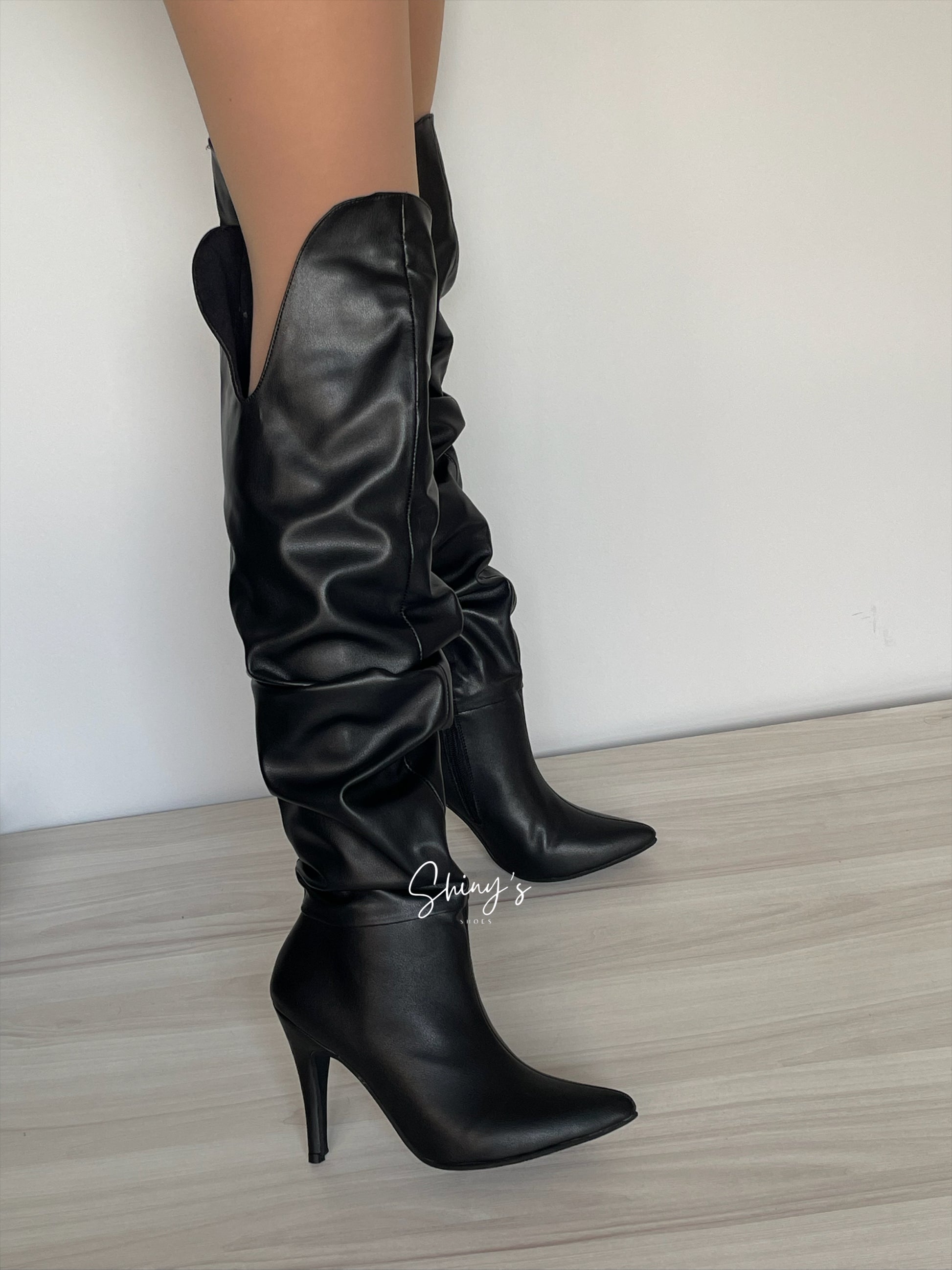- Diseño: Punta afilada y silueta extralarga que se eleva por encima de la rodilla.