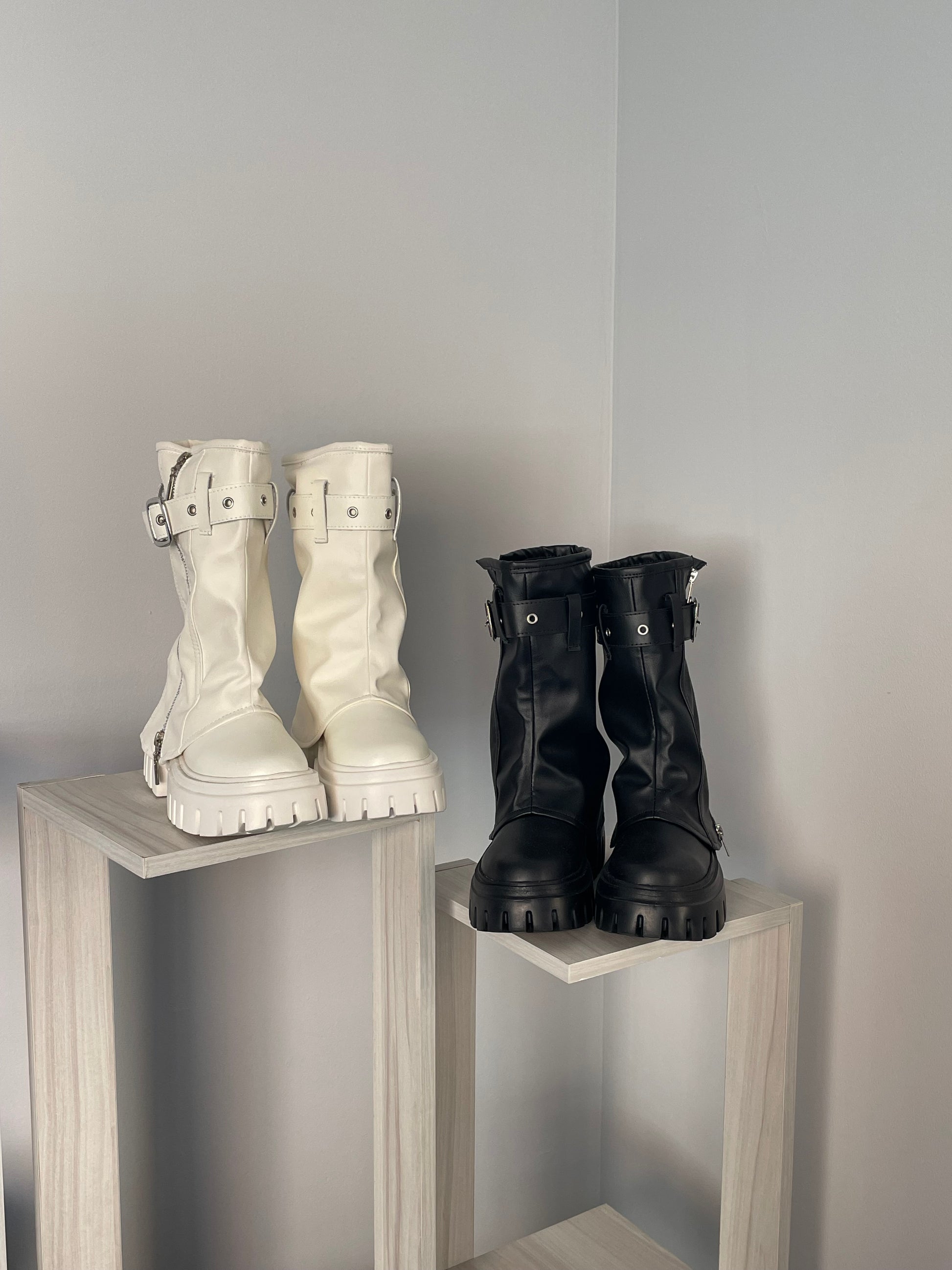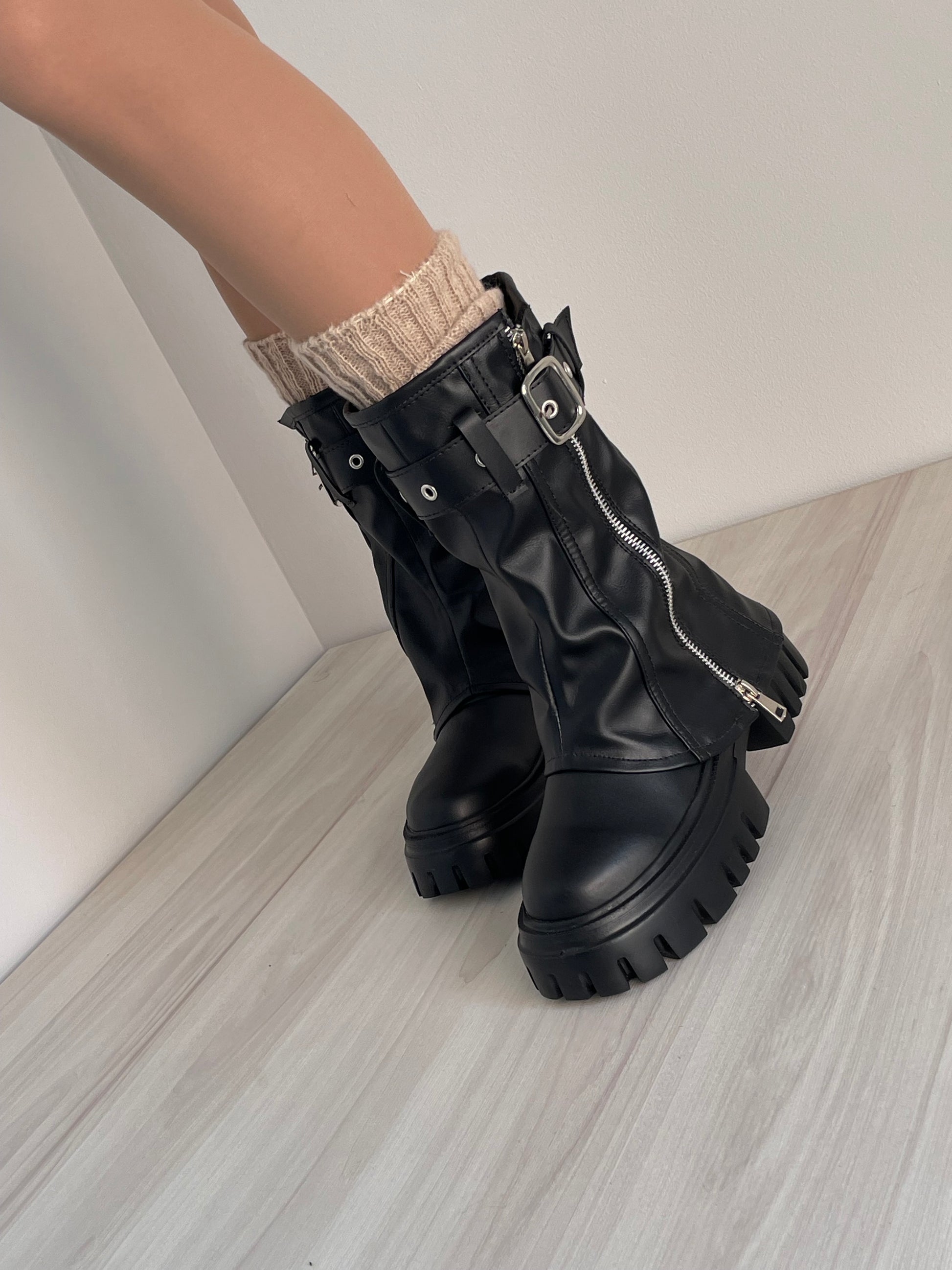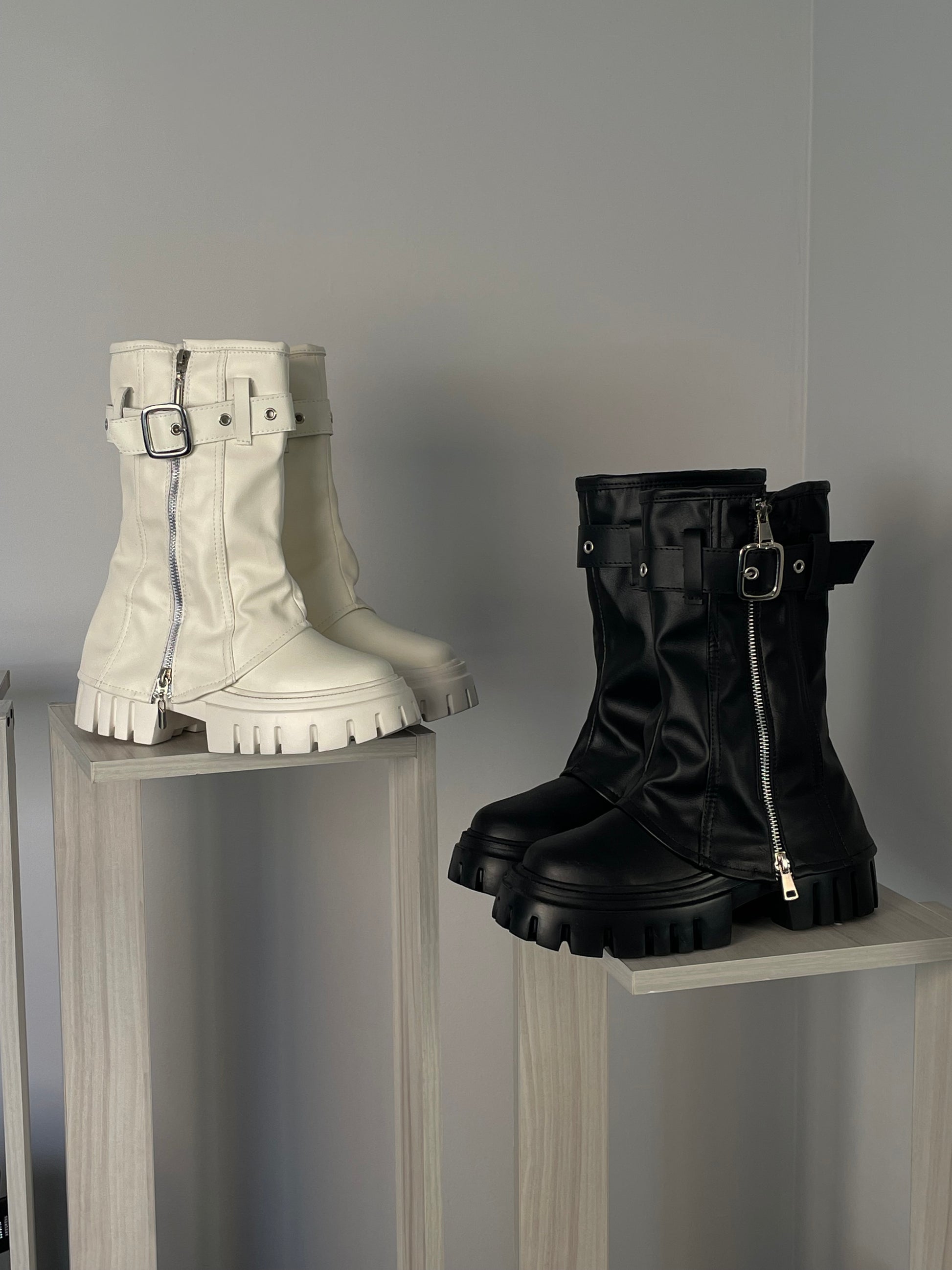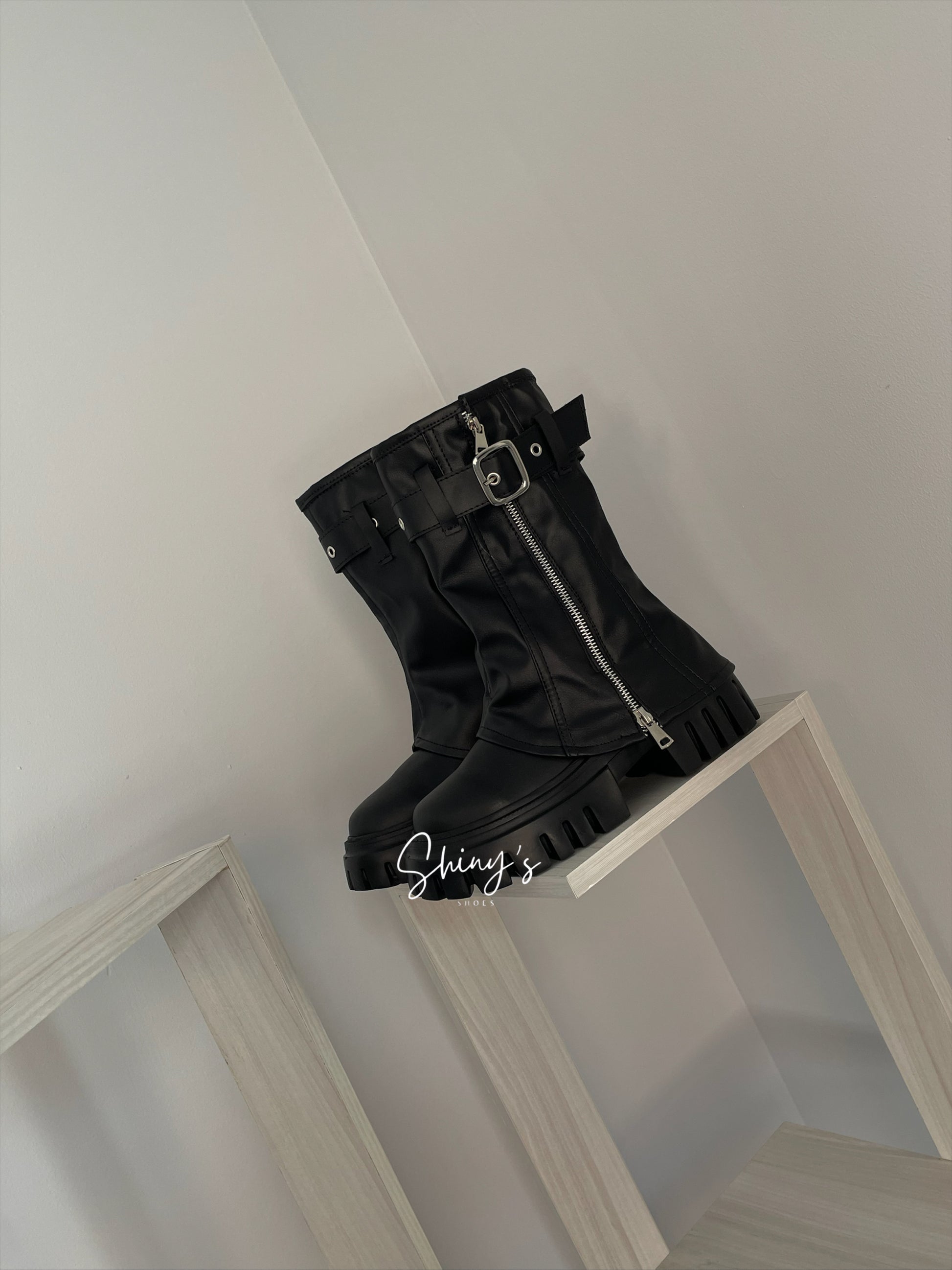 - Diseño: Botín largo tipo falda fija, elegante y versátil.