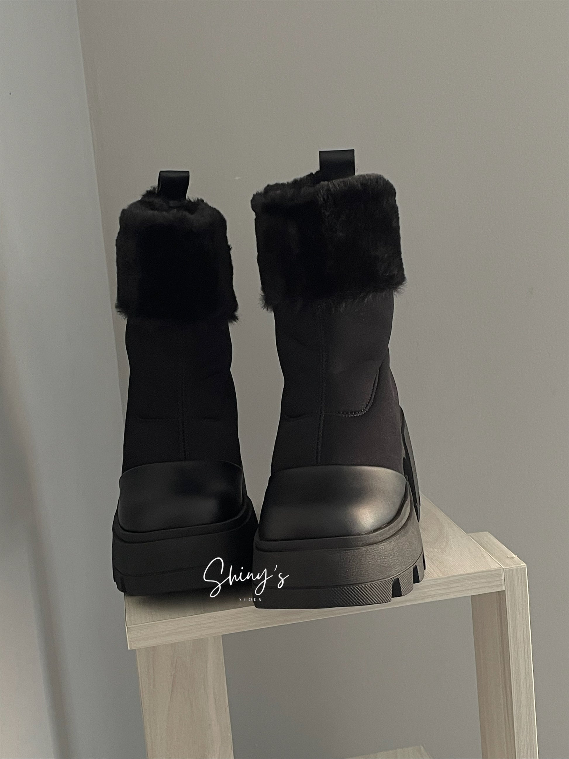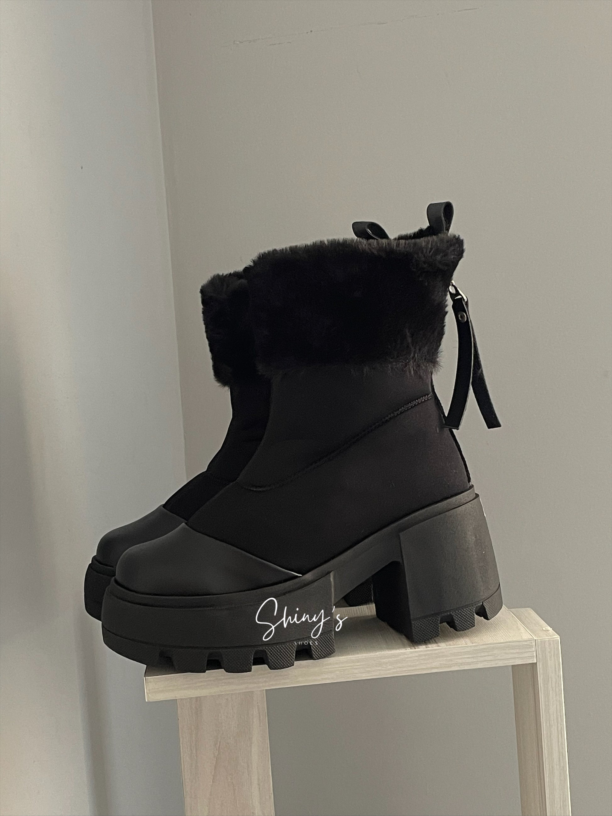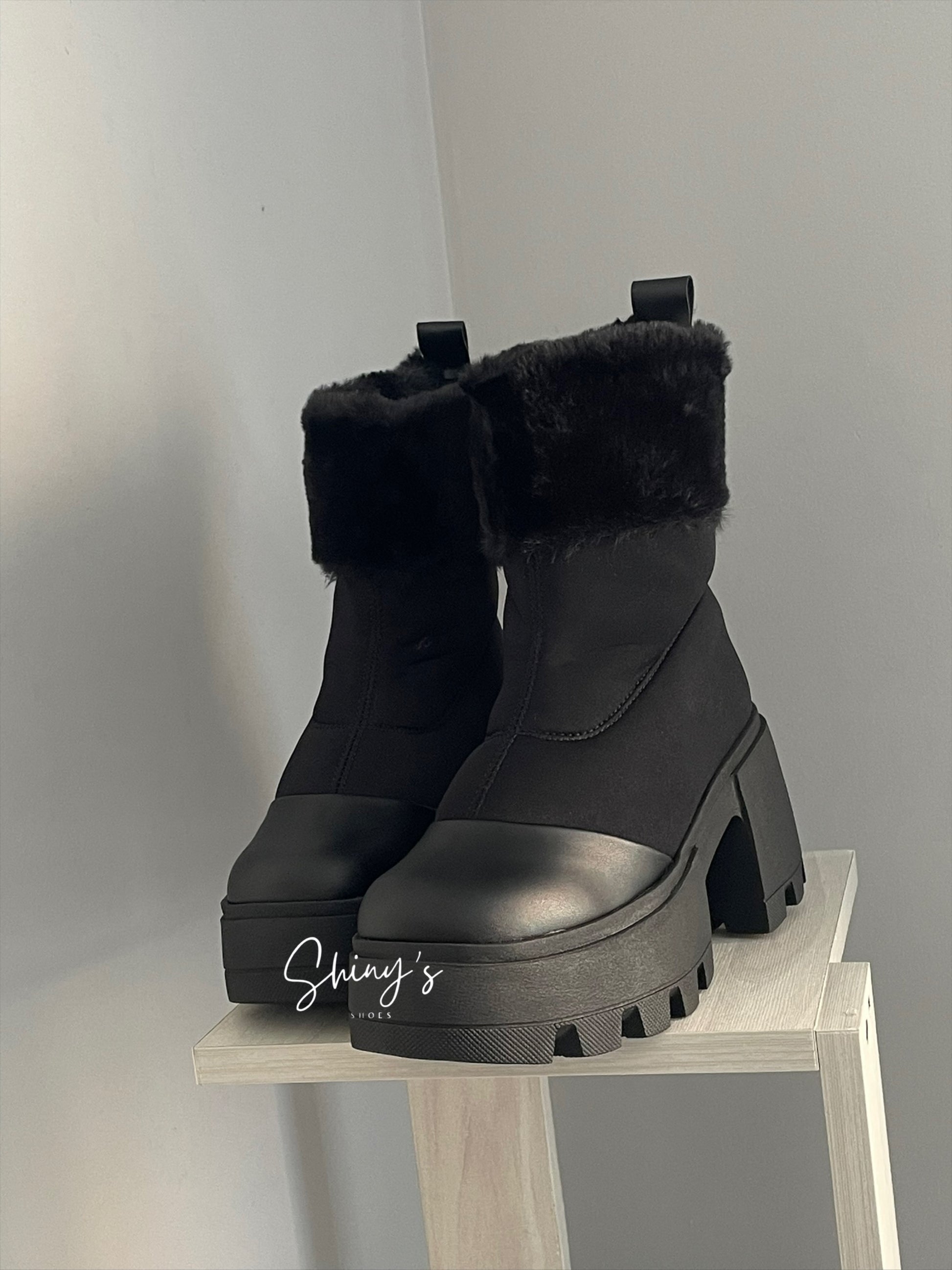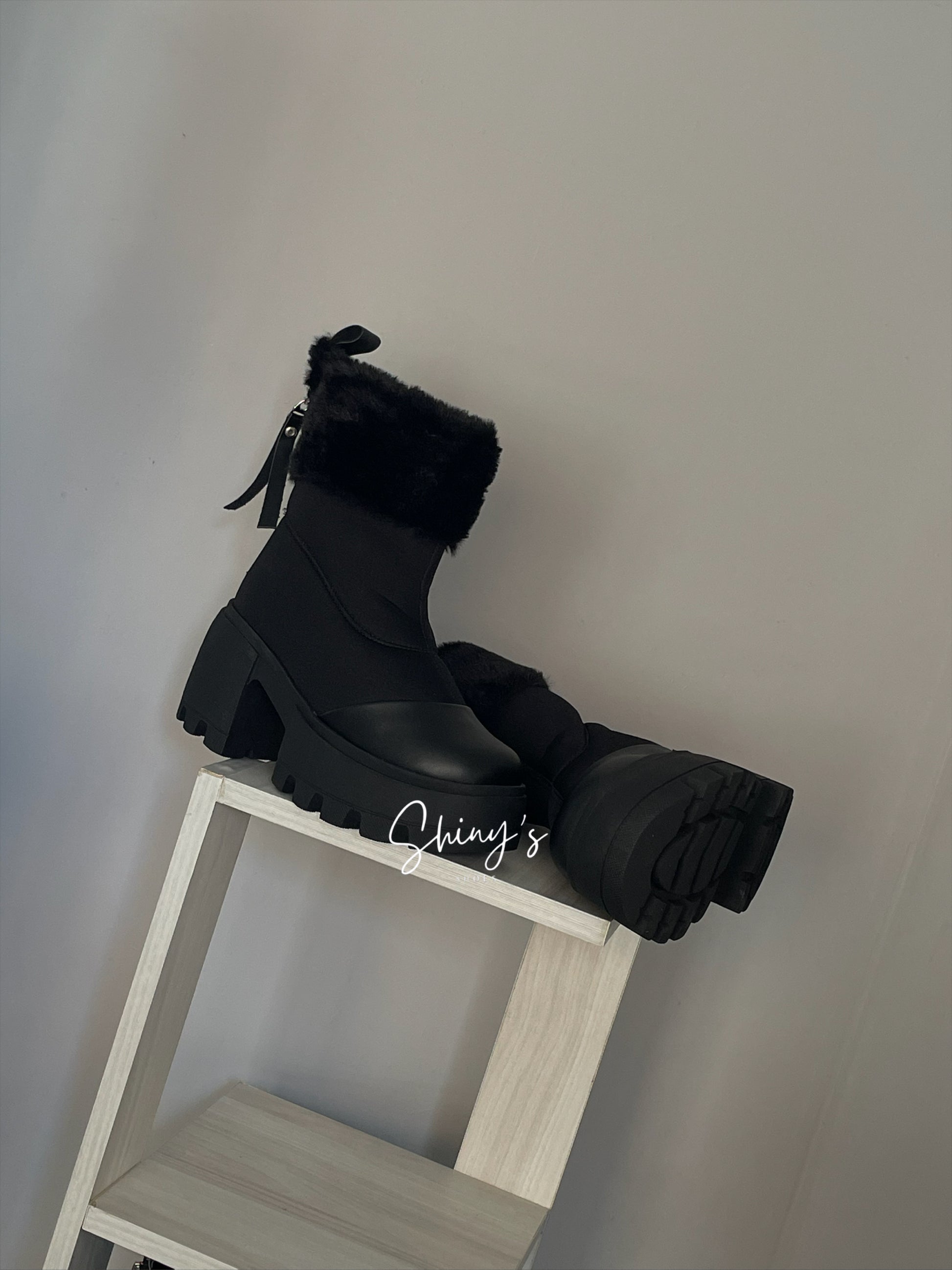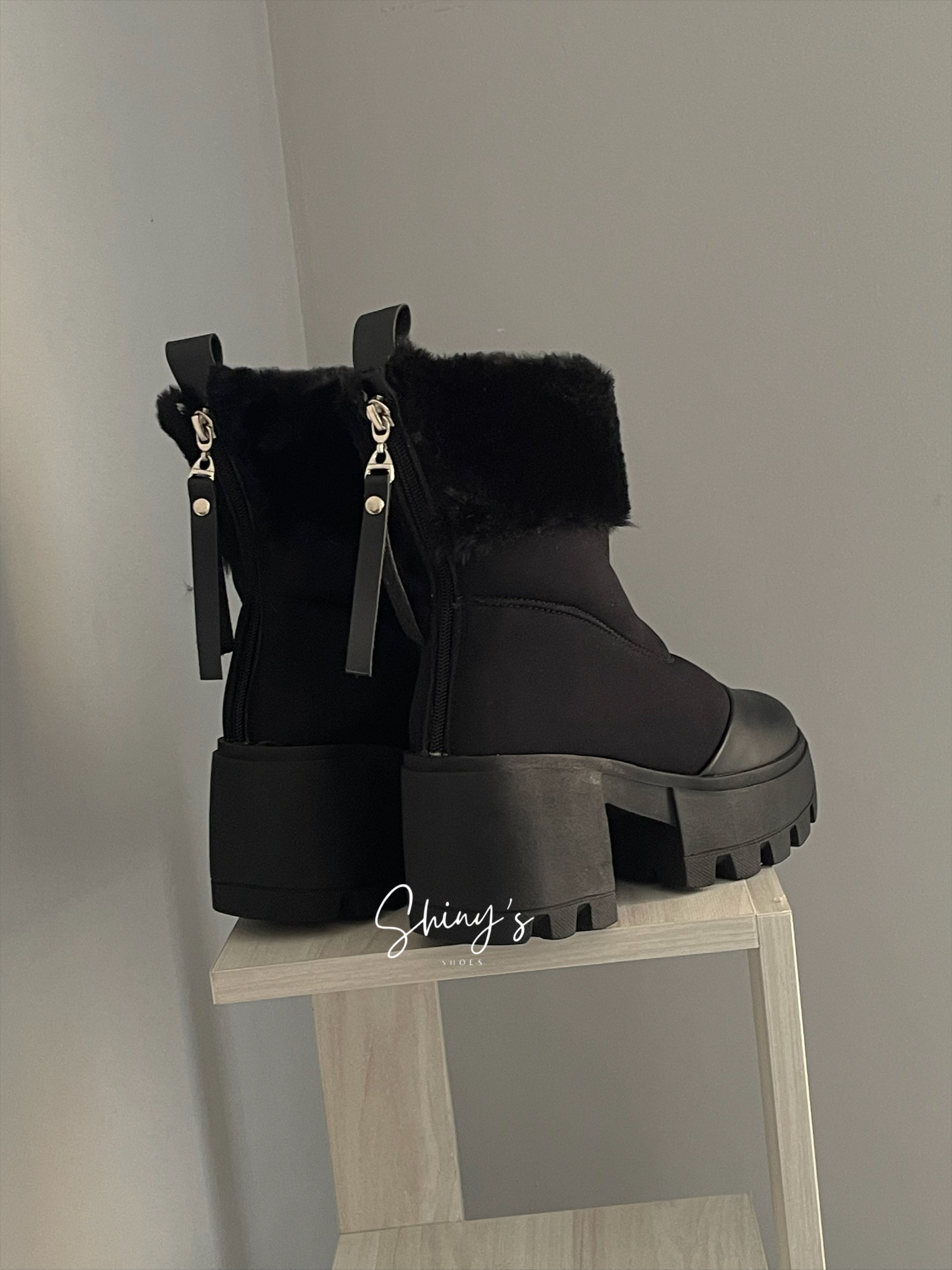 Botines de plataforma con caña en neopreno y detalle de peluche
