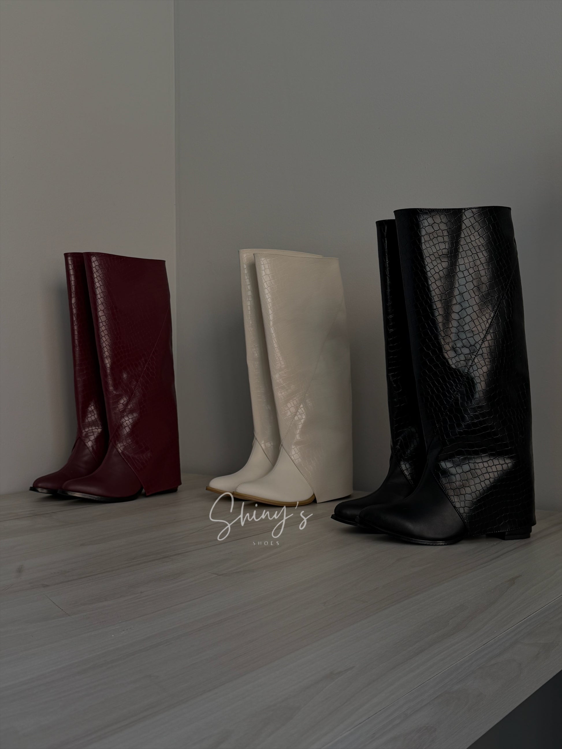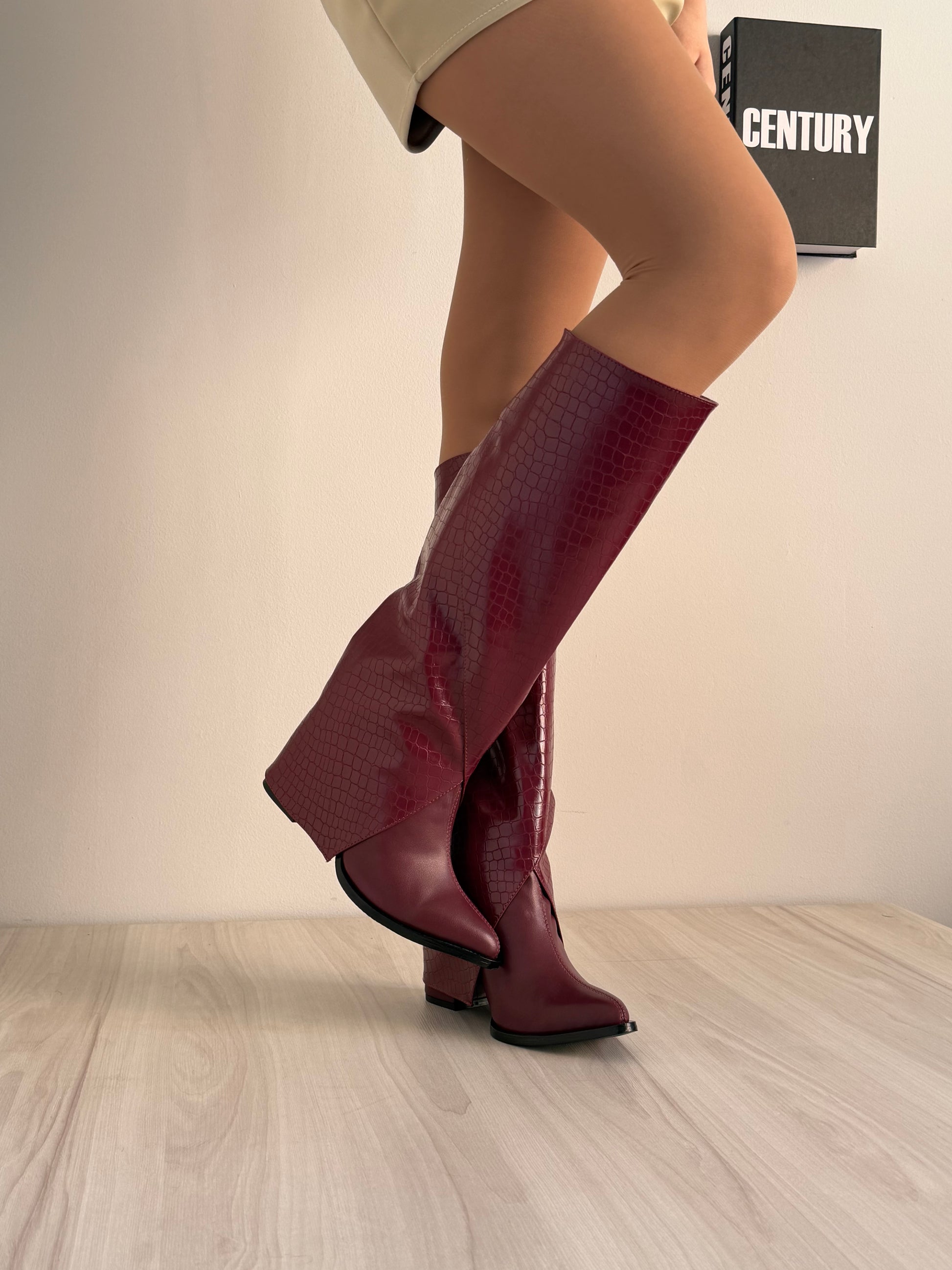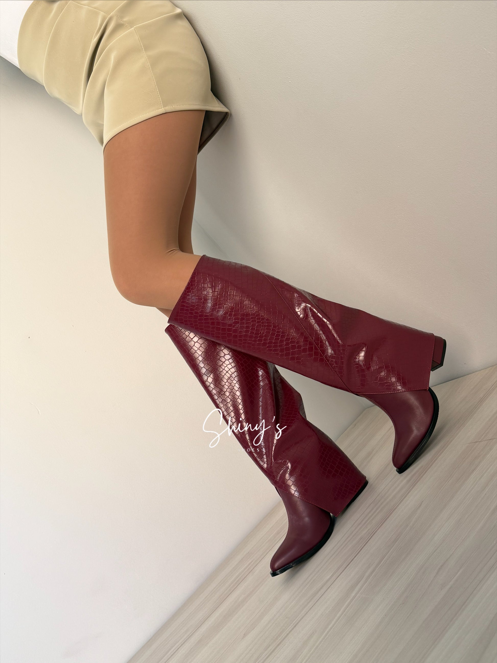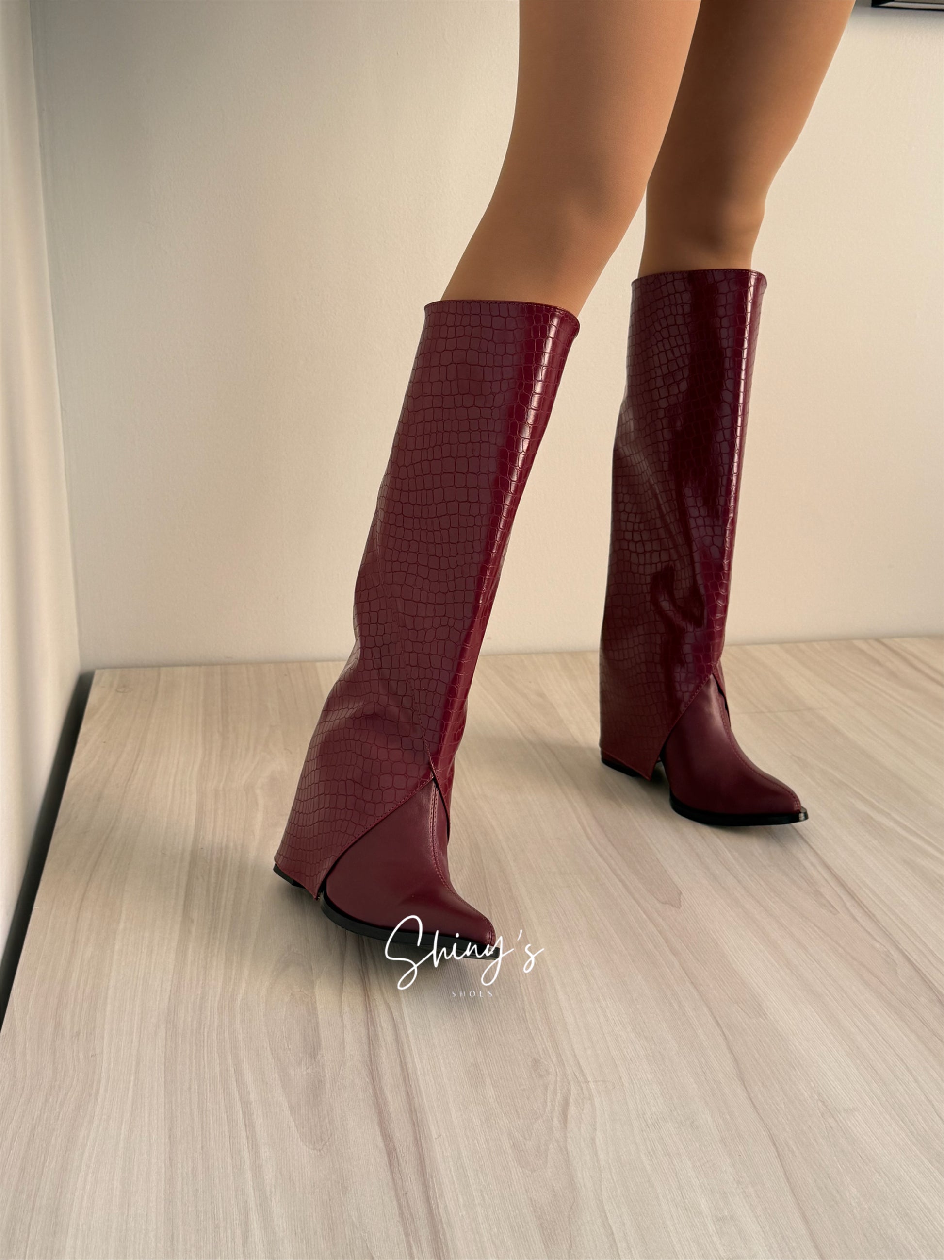 Cuando quieras un look más arriesgado, agrega la caña en efecto cocodrilo y transfórmalos en unas impactantes botas que roban miradas.