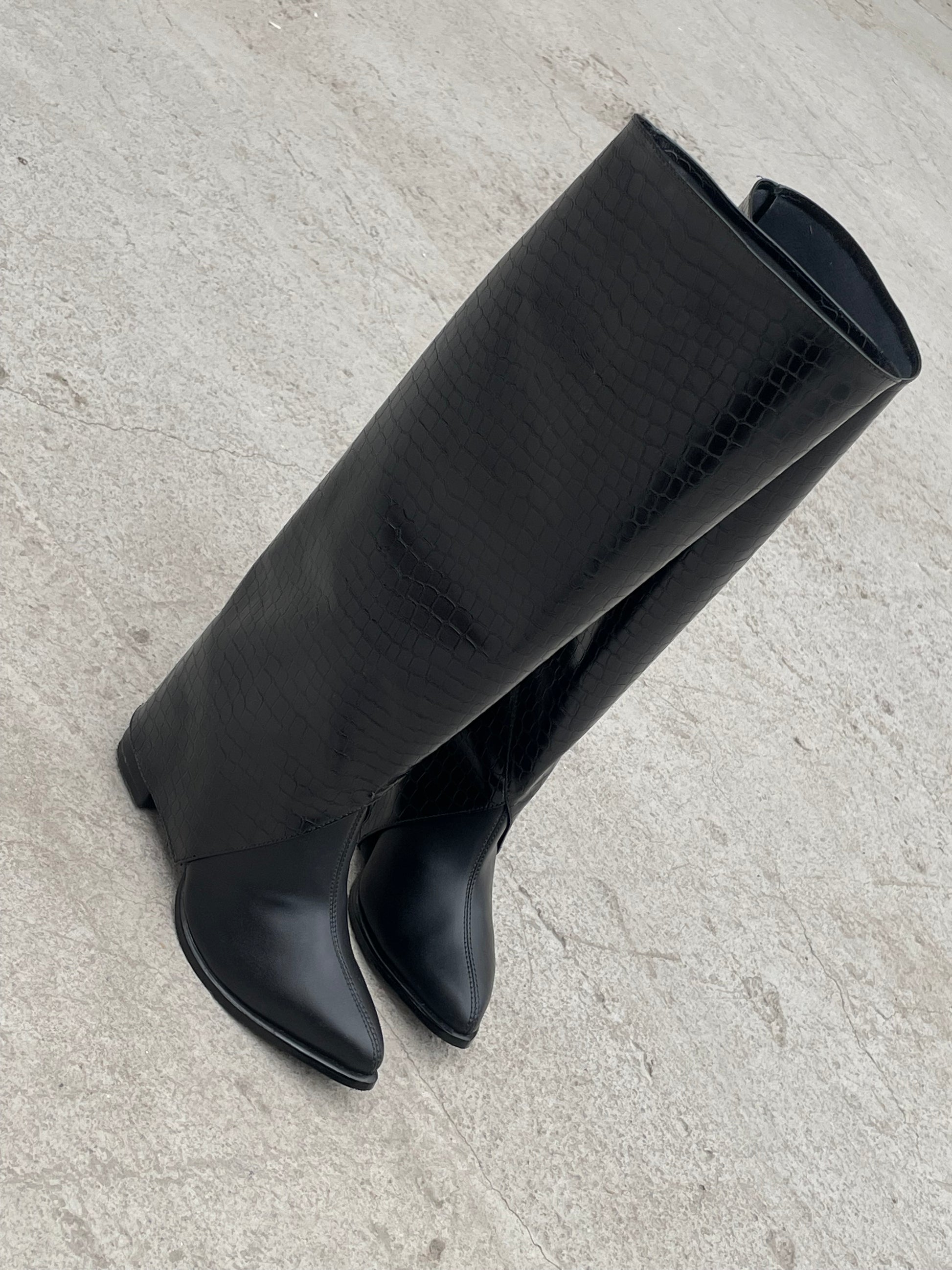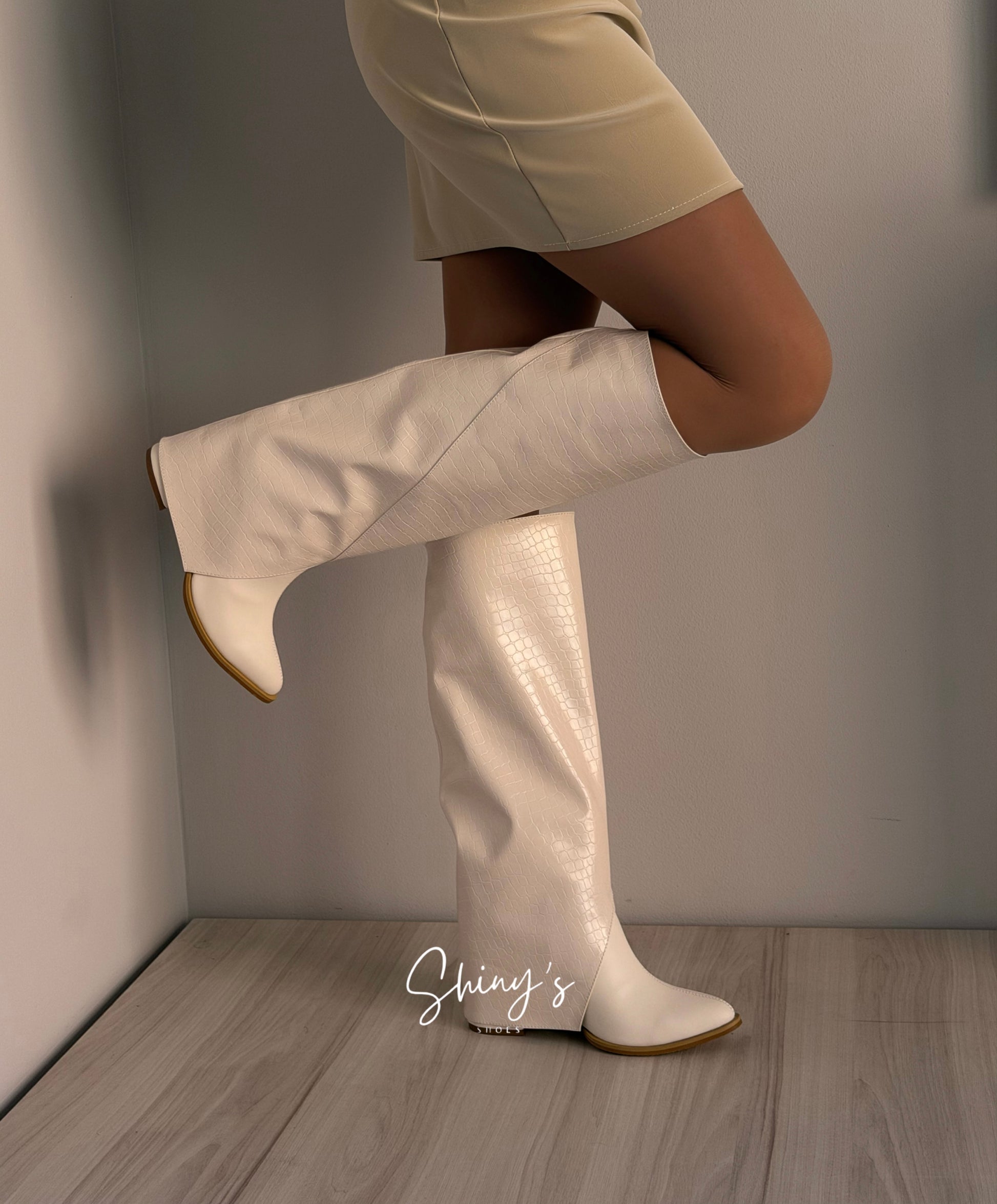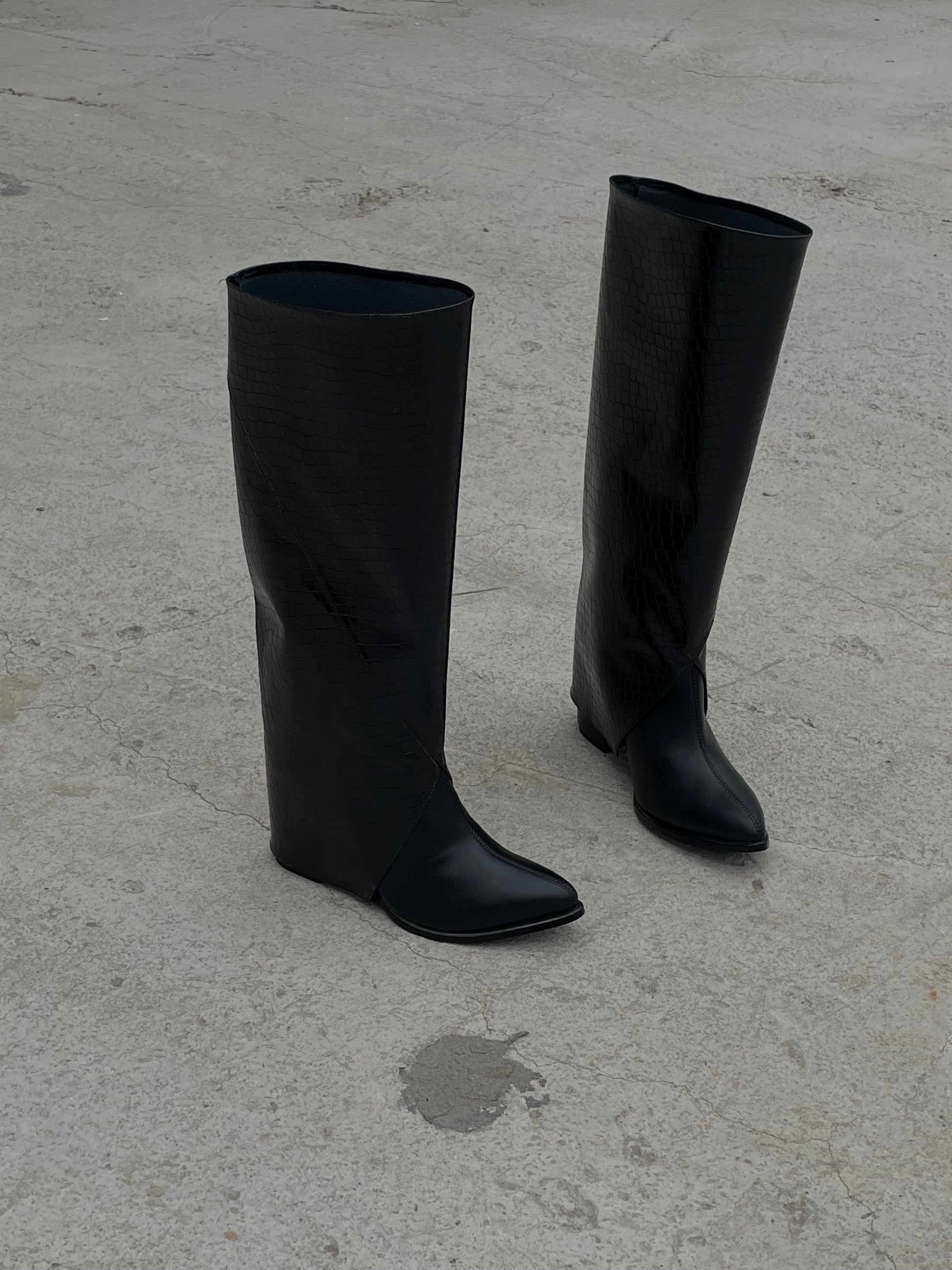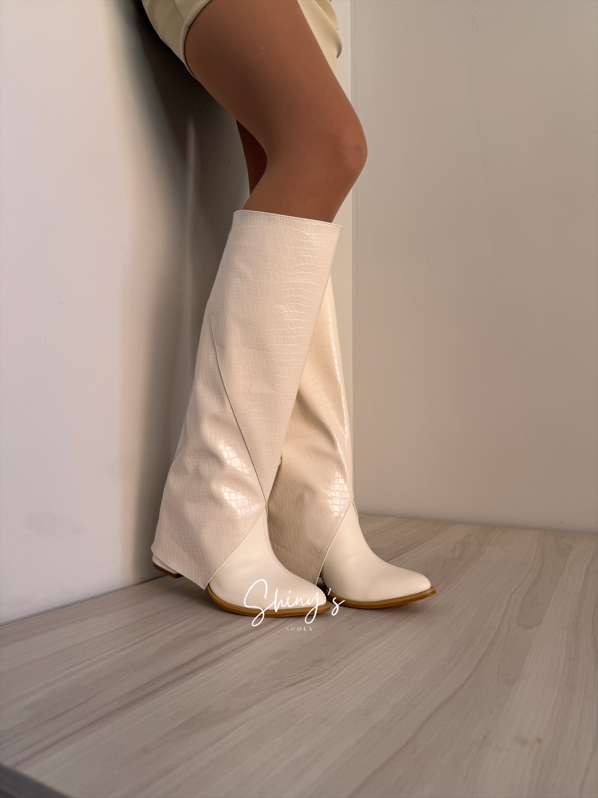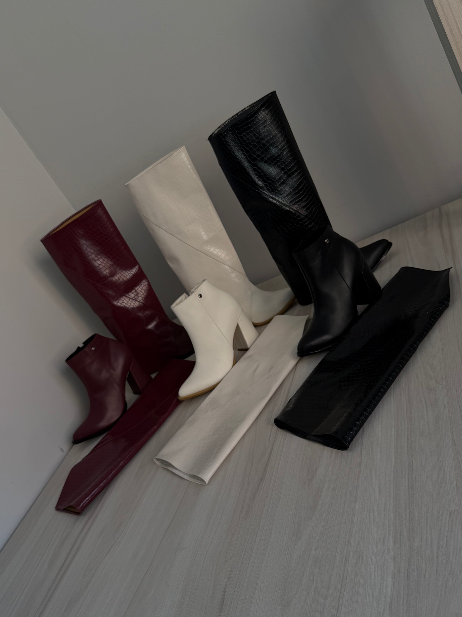 Cuando quieras un look más arriesgado, agrega la caña en efecto cocodrilo y transfórmalos en unas impactantes botas que roban miradas.