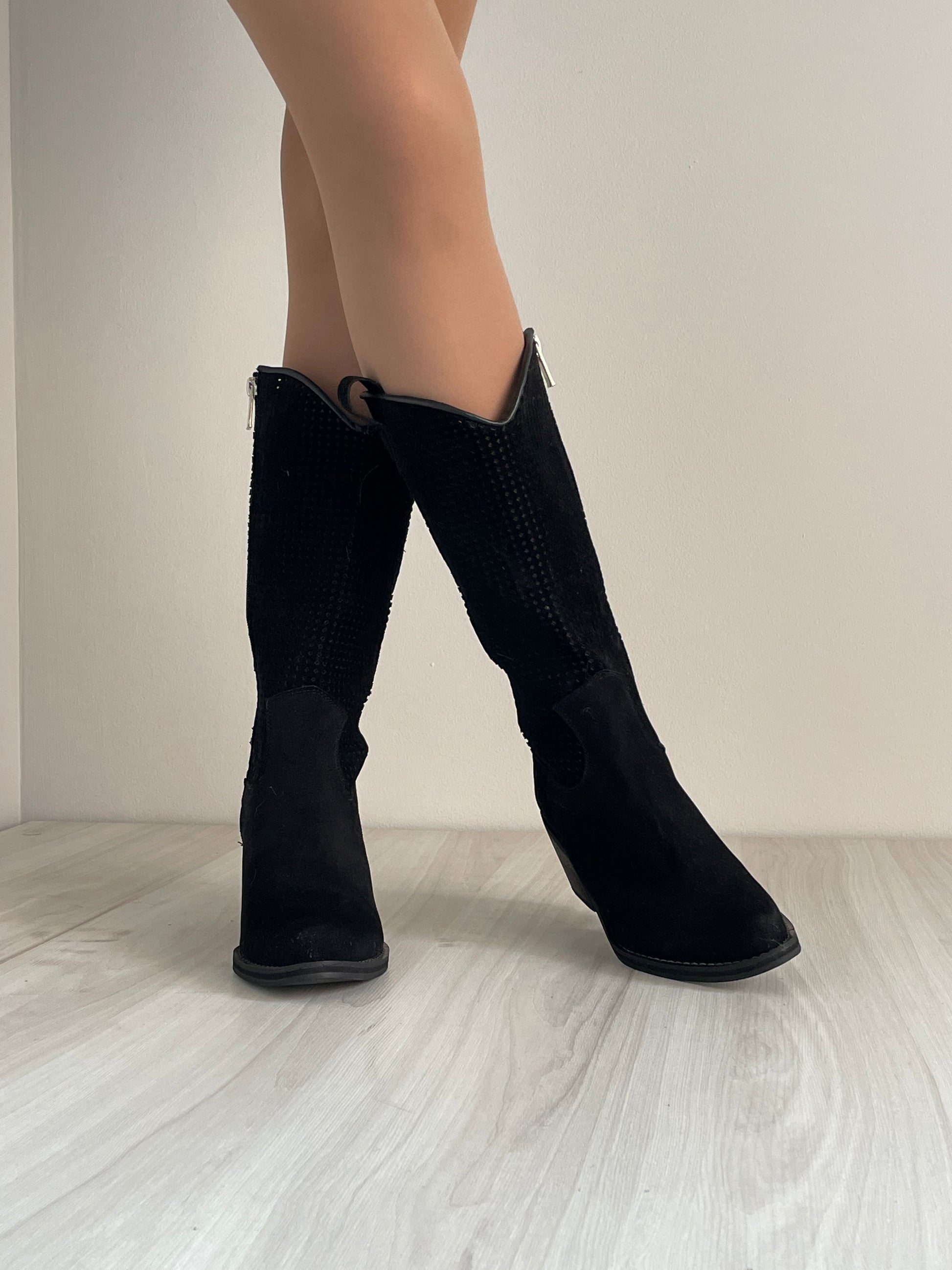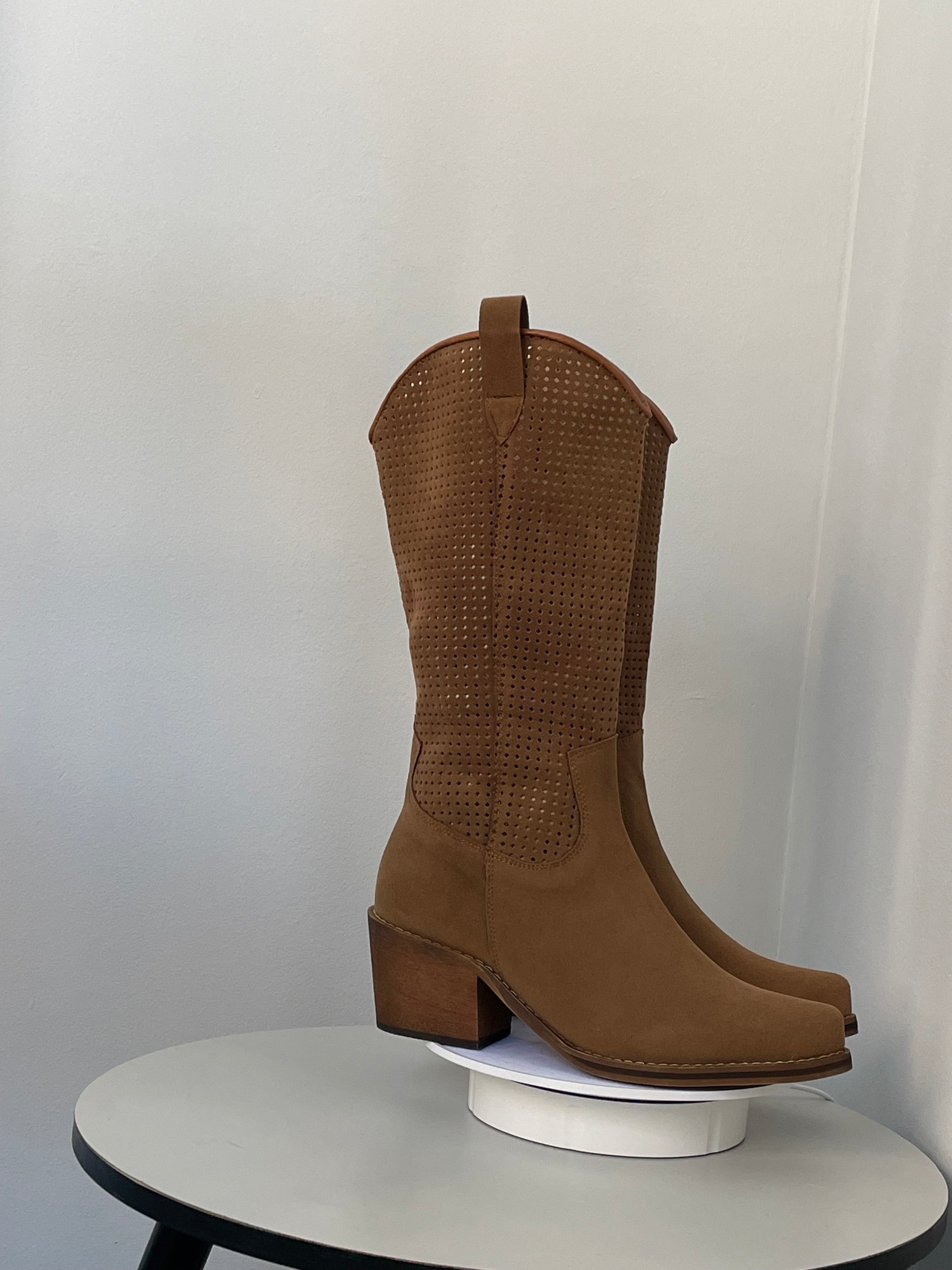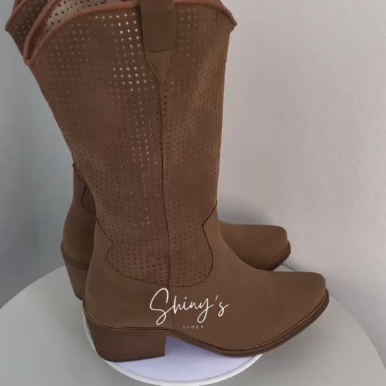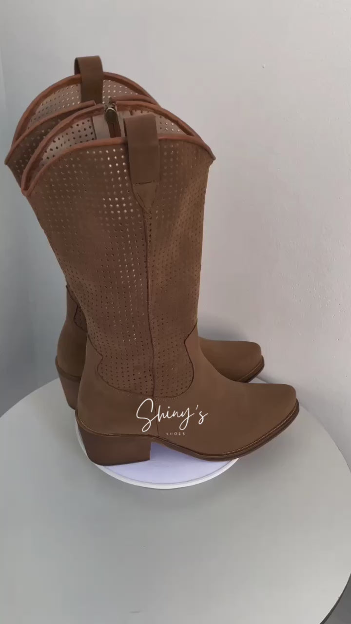 Diseñadas con estilo y comodidad, estas botas texanas están elaboradas en piel cárnaza de alta calidad, brindando un acabado suave y elegante. La caña perforada aporta un detalle distintivo que combina frescura y diseño, ideal para un look auténtico y versátil.