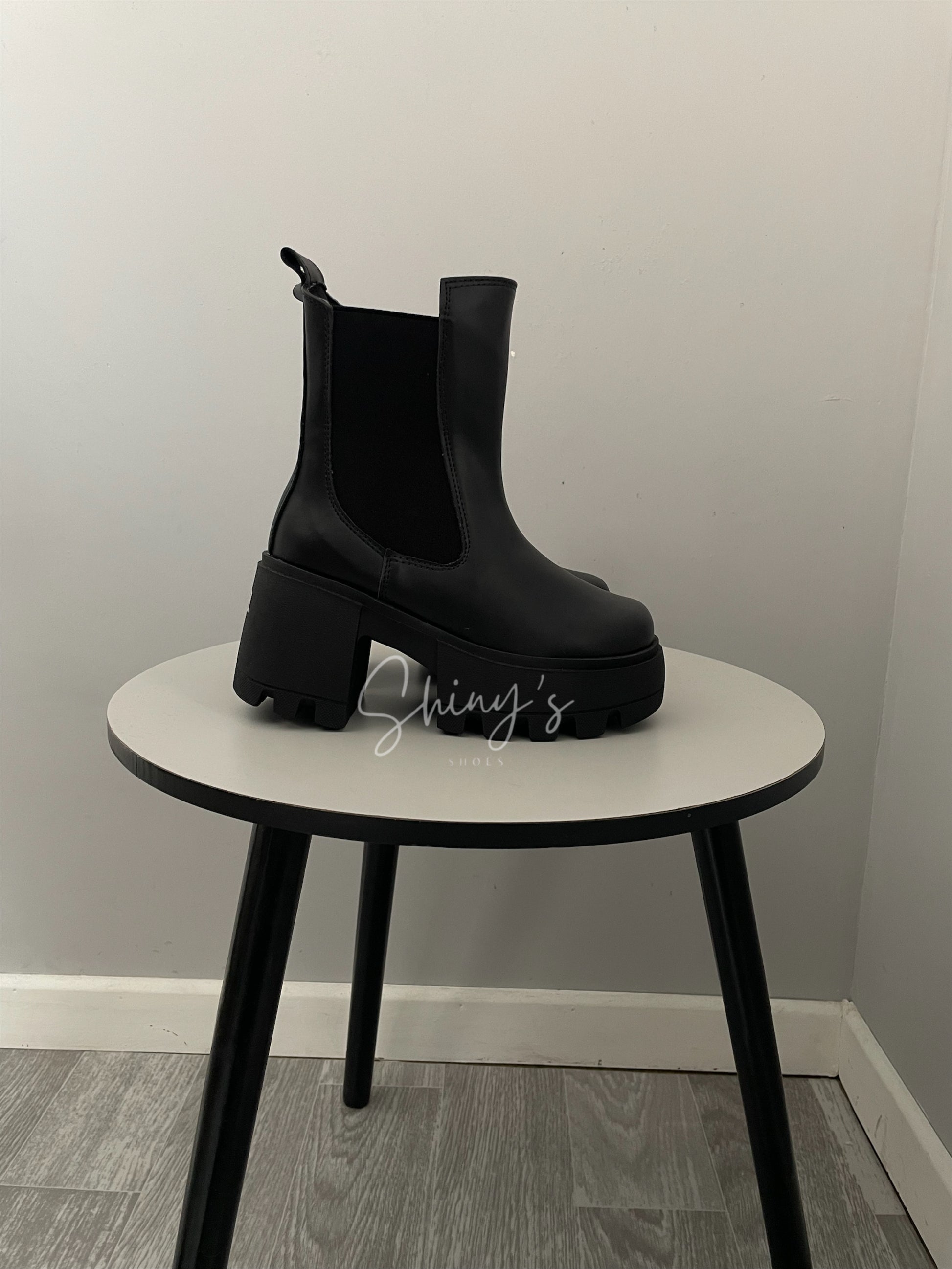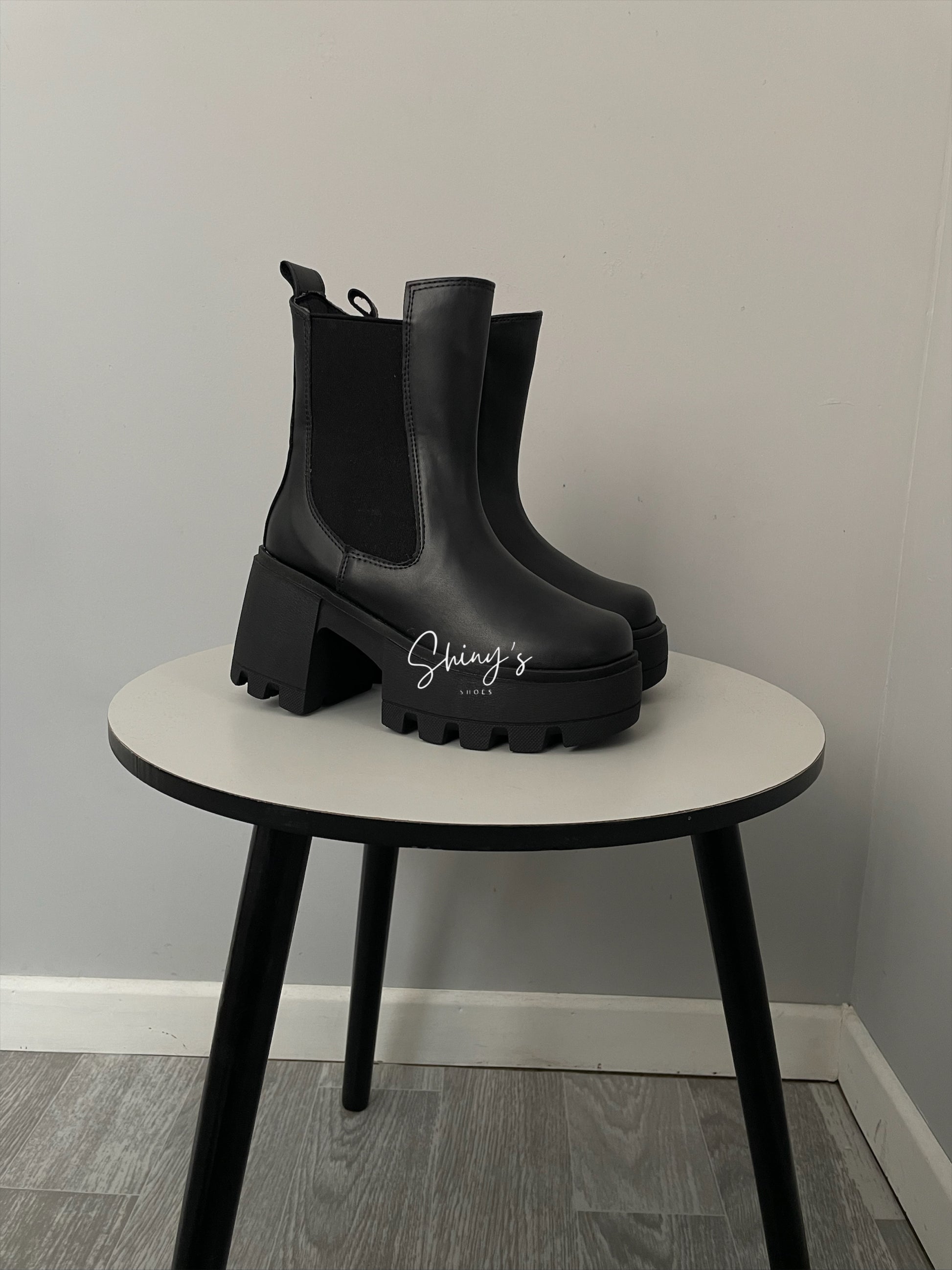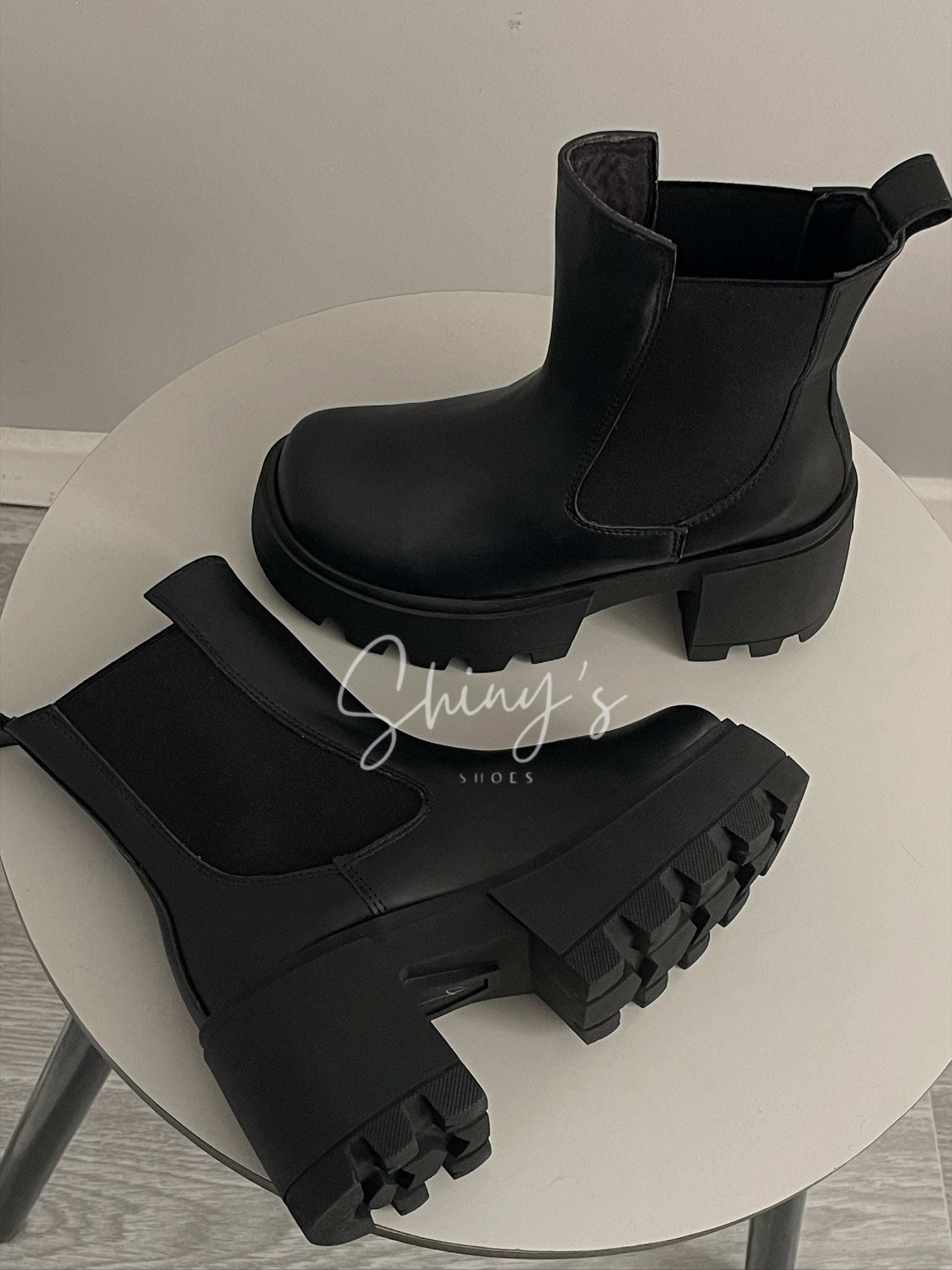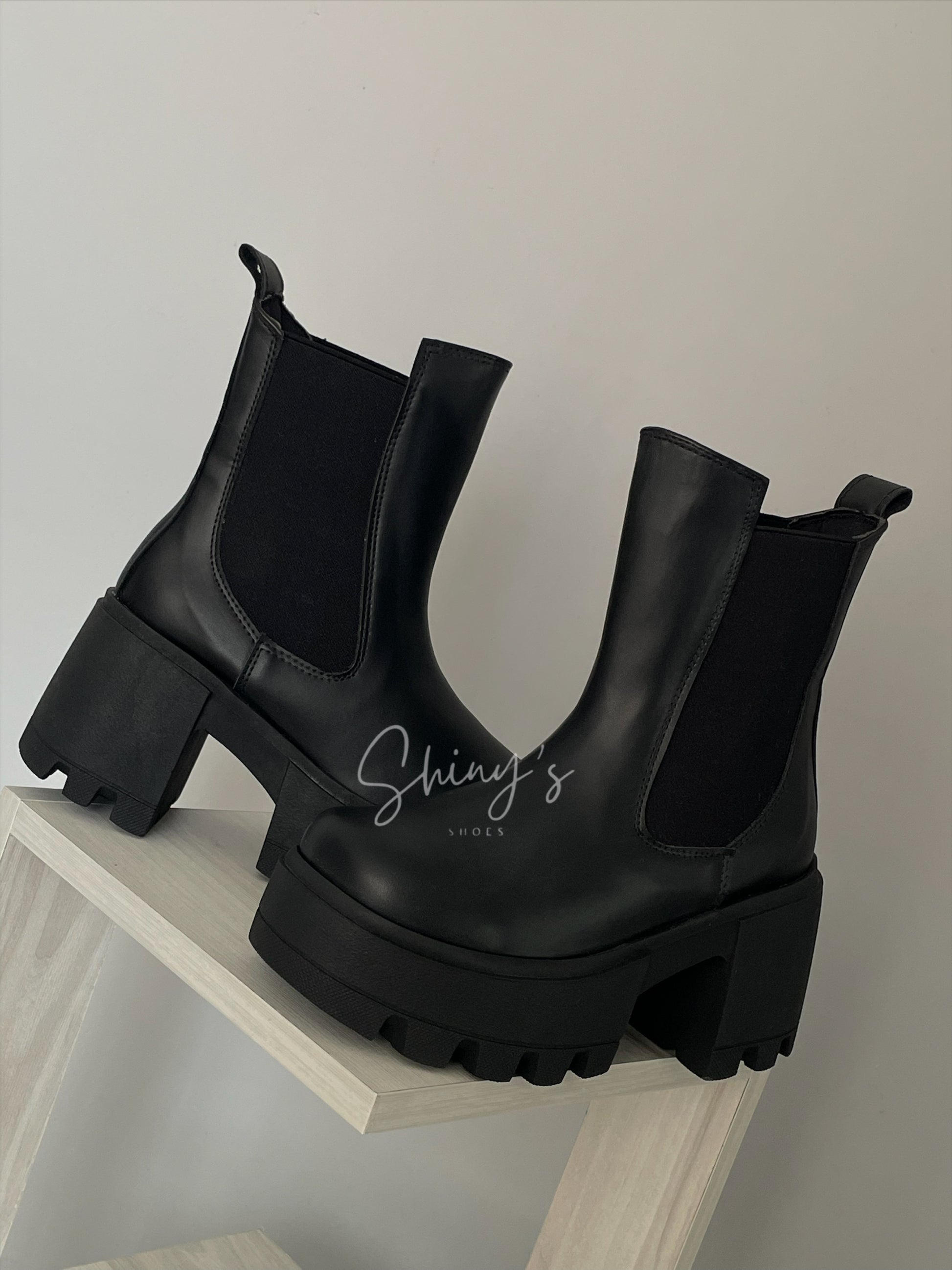 Moderno y súper cómodo, este botín en material sintético cuenta con resortes laterales que facilitan el calce y se ajustan perfecto al pie. Su suela en plataforma de 7 cm, suave y ligera, le da altura sin perder confort, ideal para usar todo el día con estilo. 👢💫