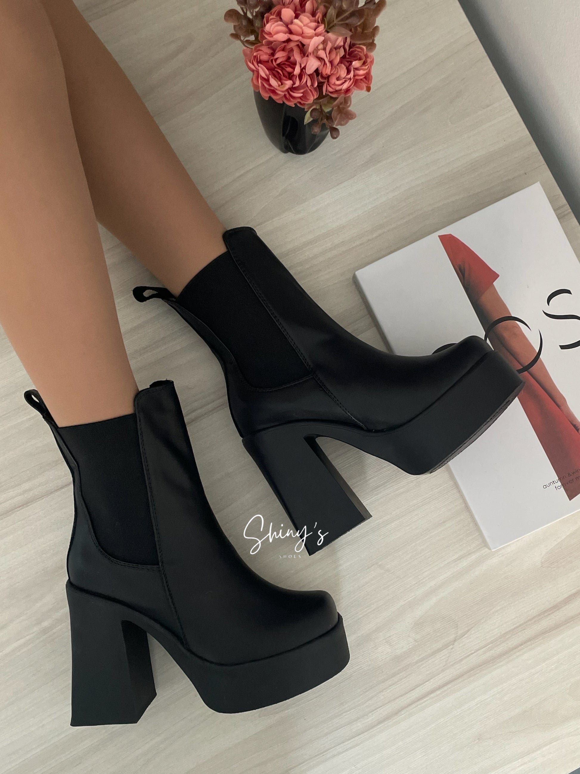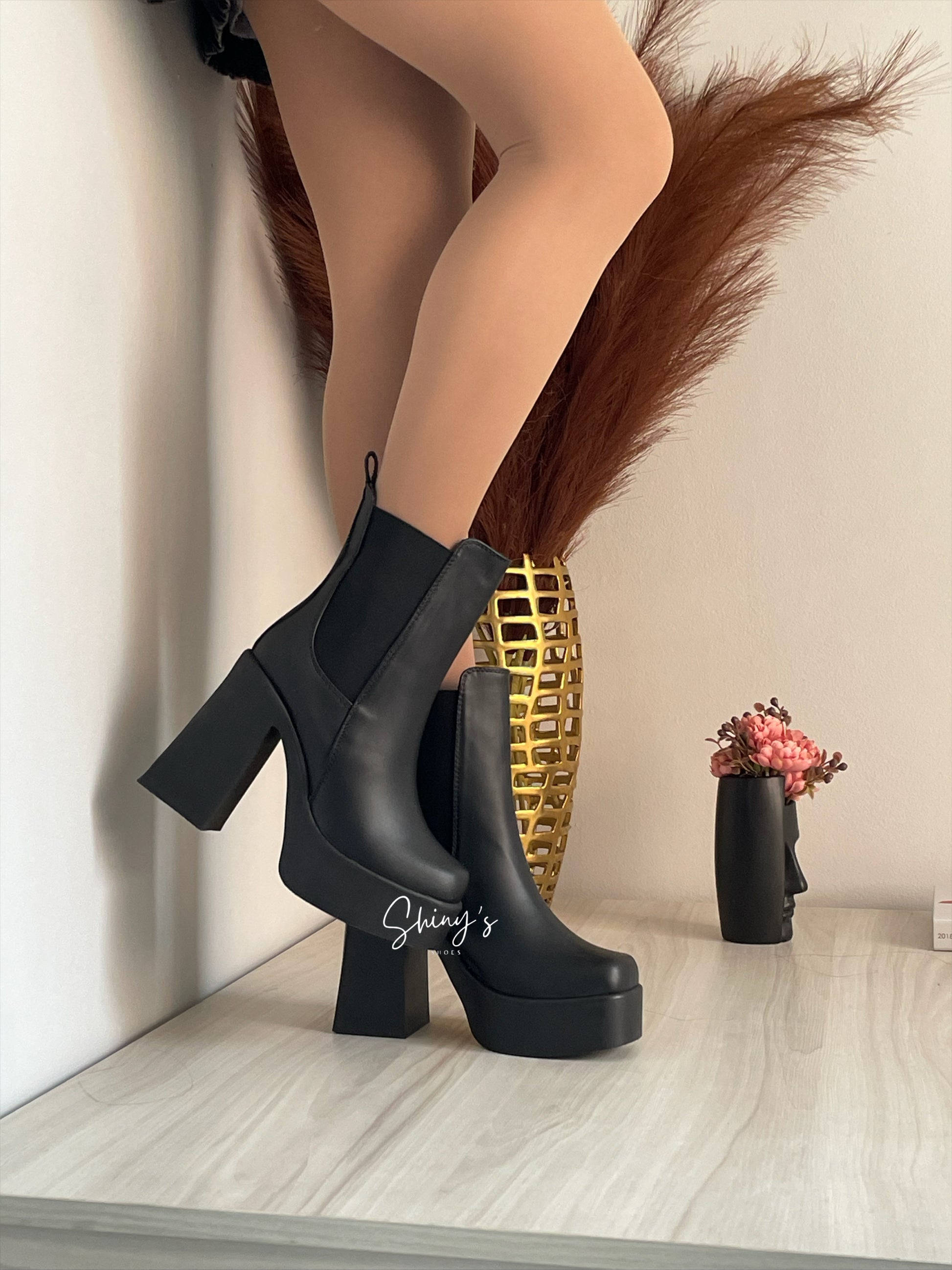 Diseñados para realzar tu estilo, estos botines cuentan con un tacón de 9 centímetros y una plataforma de 4 centímetros, que aportan altura con mayor comodidad al caminar. Su diseño incorpora resortes laterales que facilitan el ajuste y la puesta, ofreciendo practicidad sin perder elegancia.