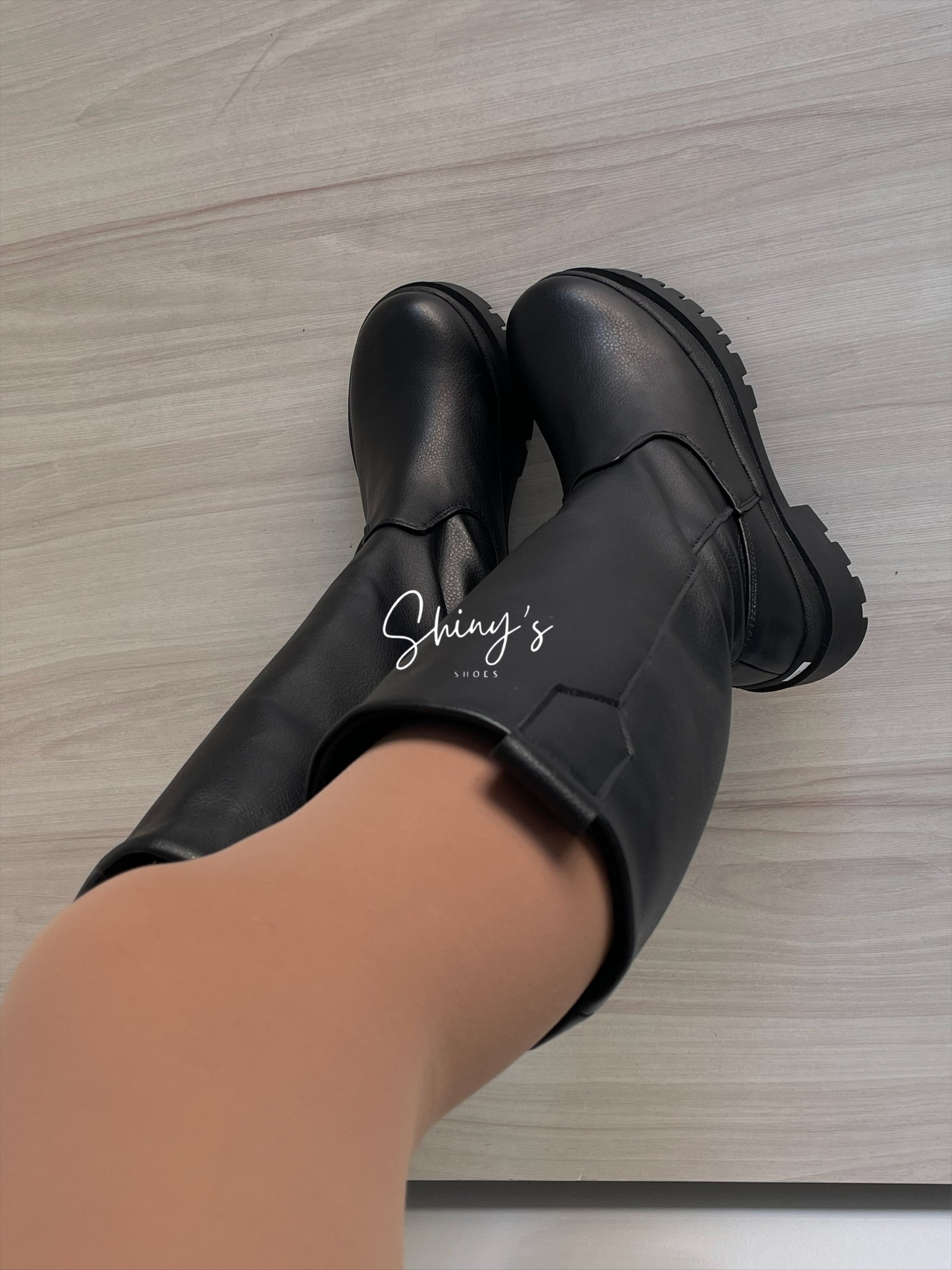 Un diseño sencillo y versátil que nunca pasa de moda. Estas botas en color negro destacan por su comodidad y estilo atemporal, con un detalle de orejitas a los costados que las hace únicas. Suaves, ligeras y fáciles de combinar con cualquier outfit, son el complemento perfecto para el día a día.